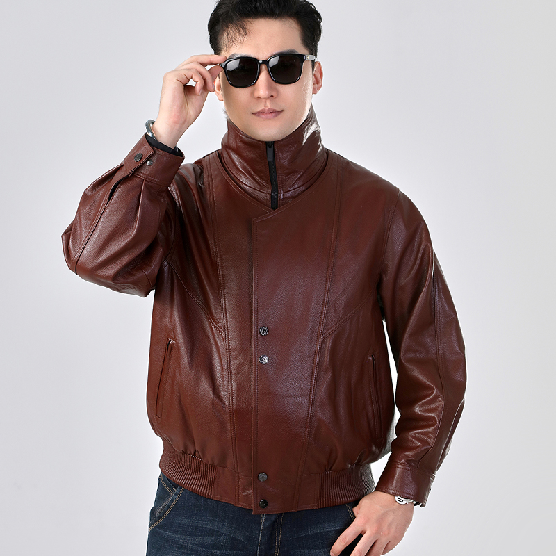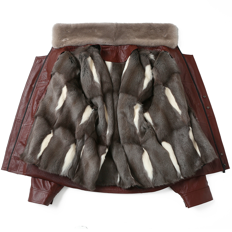 真皮皮衣男士牛皮飞行员皮夹克复古老爹90年代港风金狸貂皮毛一体