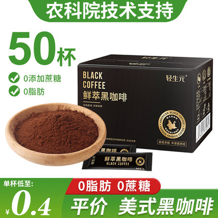 轻生元云南农科院纯黑咖啡100杯美式速溶0脂无糖精无蔗糖燃减学生