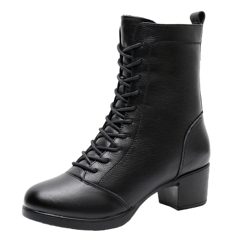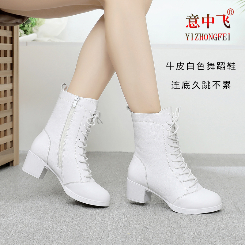 意中飞舞蹈鞋外穿时尚女带跟软底室外真皮跳舞鞋新款水兵舞鞋靴子