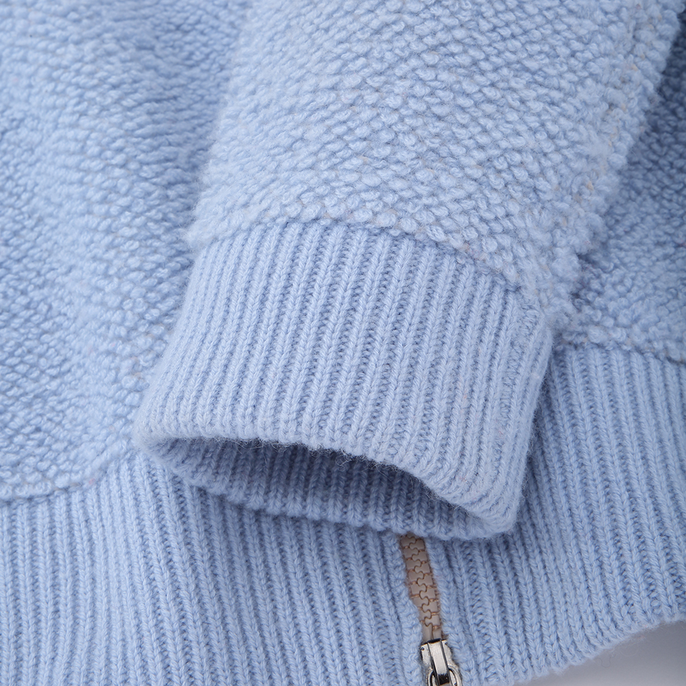 简约厚实!羊绒开衫女纯羊绒半高领针织毛衣外套秋冬宽松加厚提花