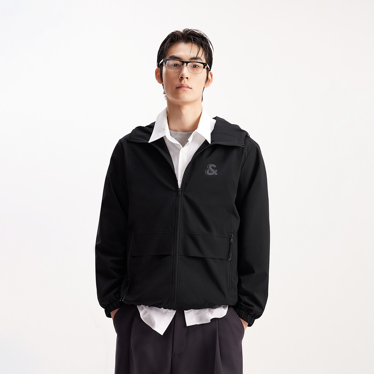 杰克琼斯外套男2026年春季休闲户外连帽夹克通勤短款风衣上衣男装