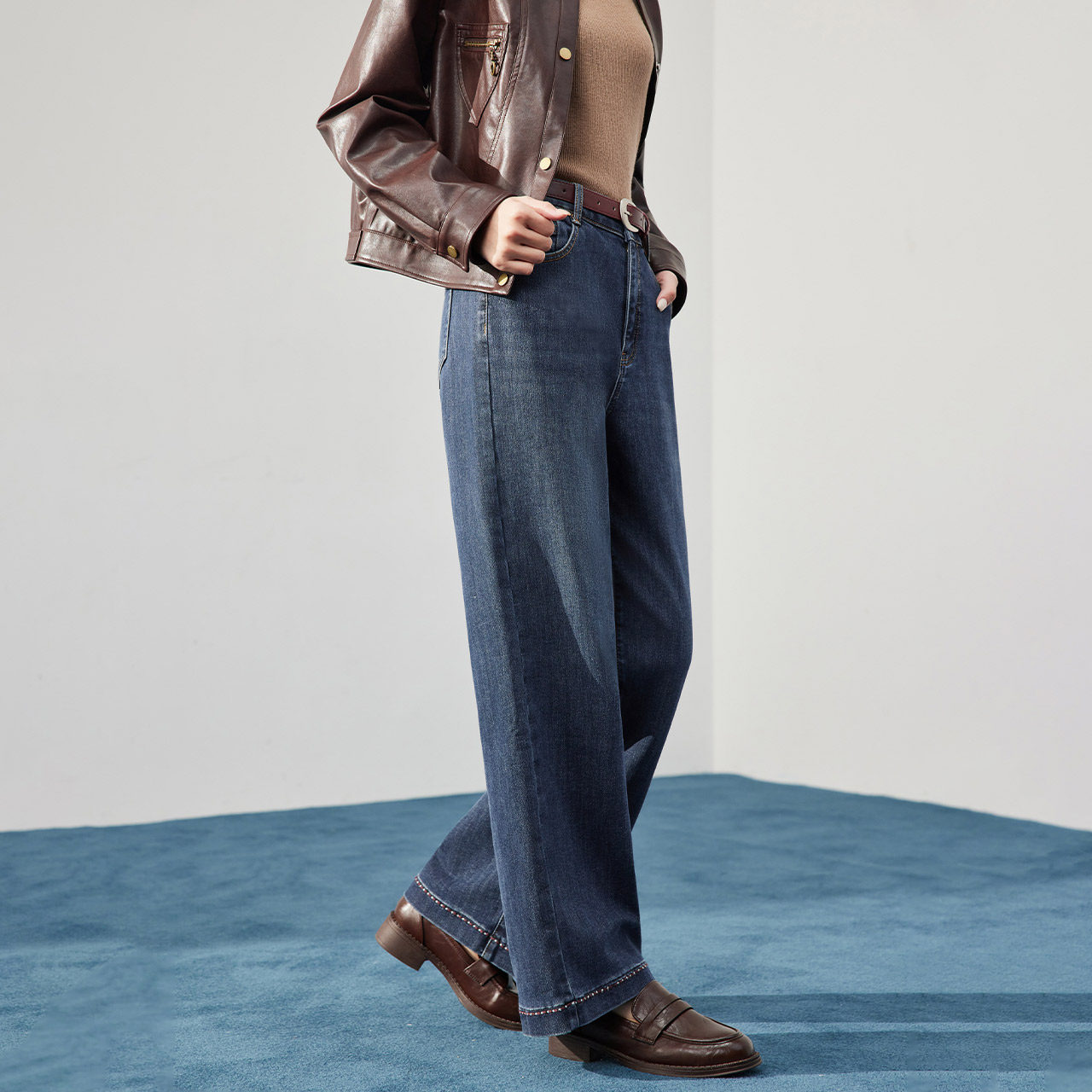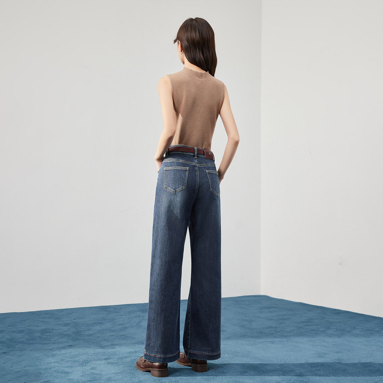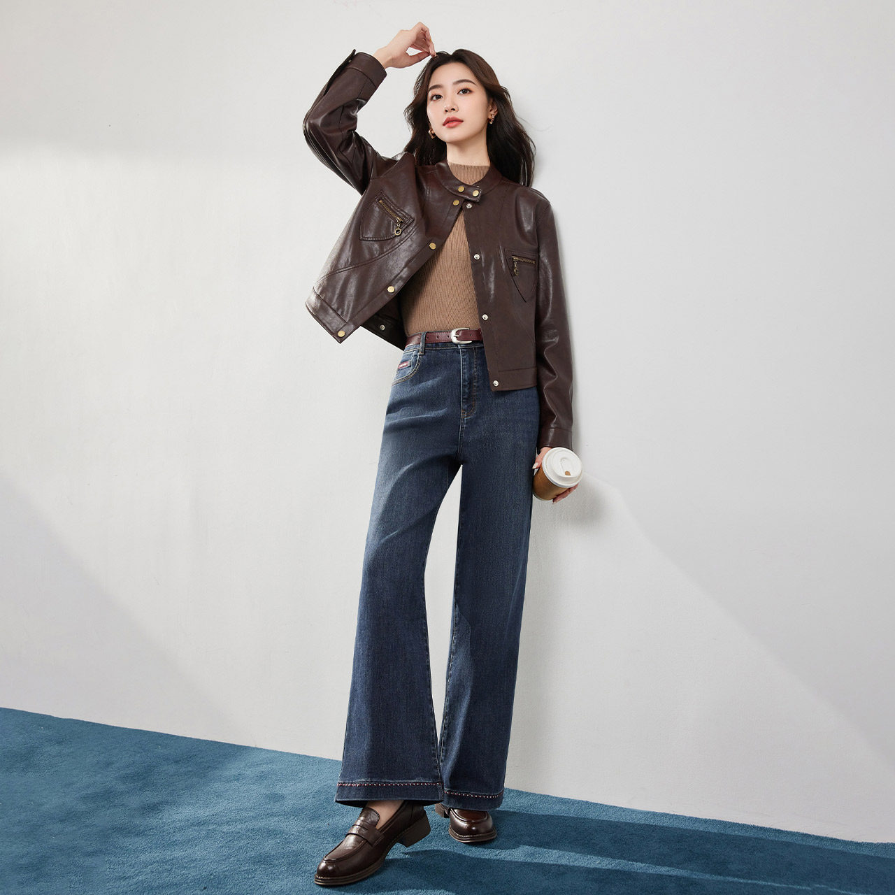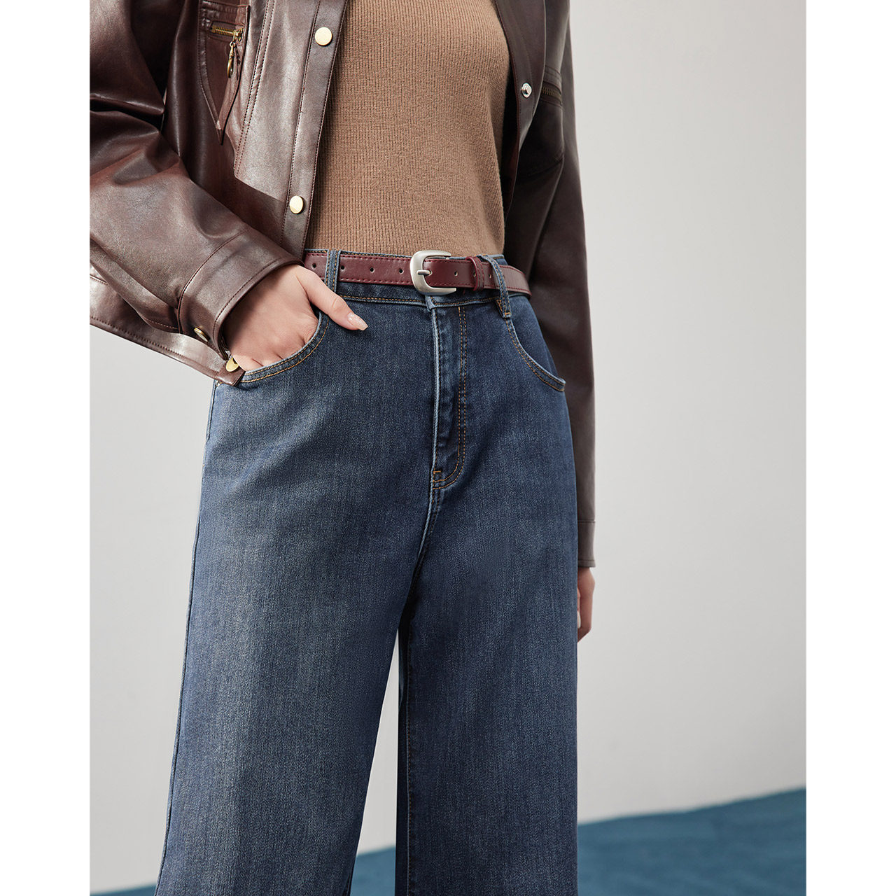 IEF/爱依服2025秋冬新款韩版简约休闲通勤气质百搭加绒牛仔阔腿裤
