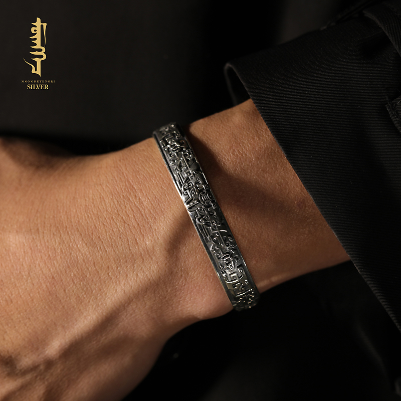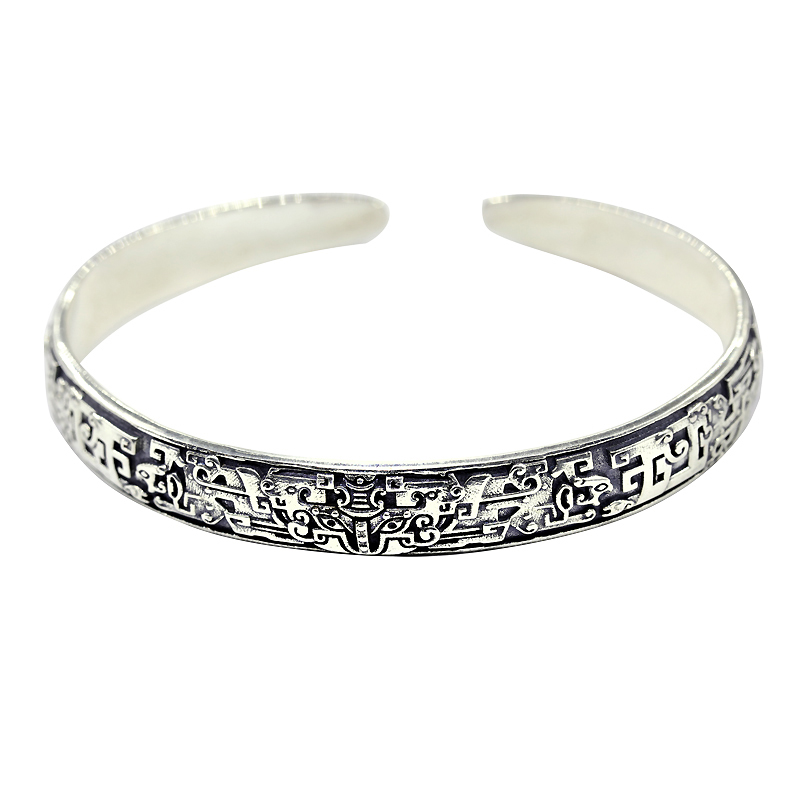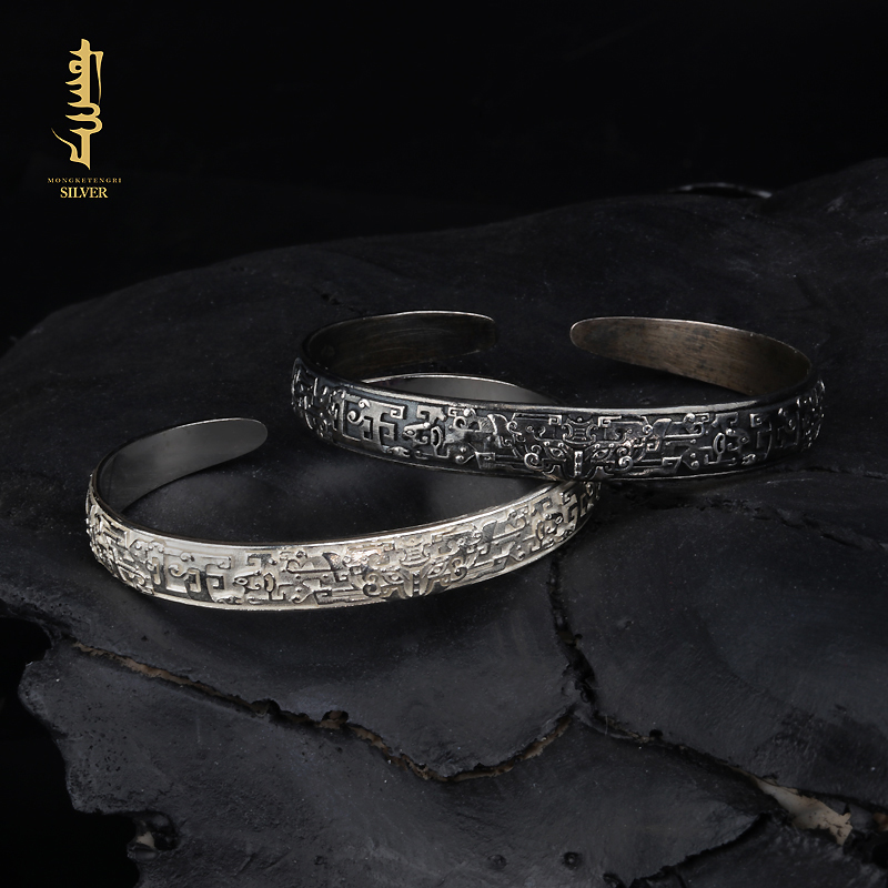 蒙客银民族风男纯银手镯