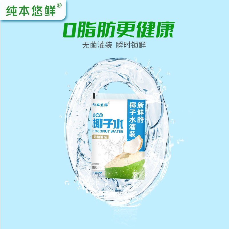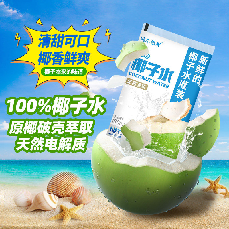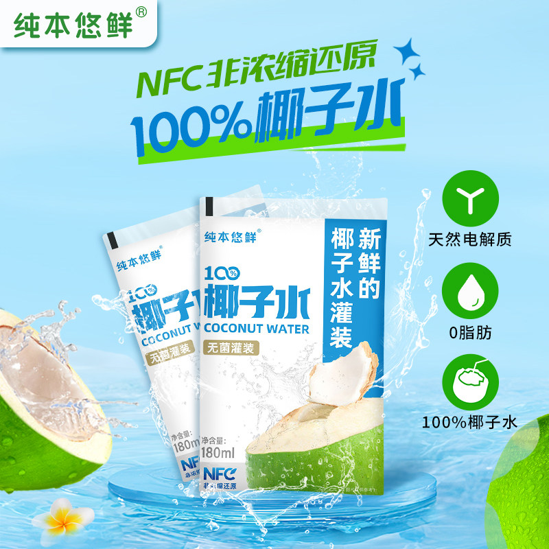 纯本悠鲜100%椰子水180mlx5袋装NFC电解质椰青0脂椰汁水果汁饮料