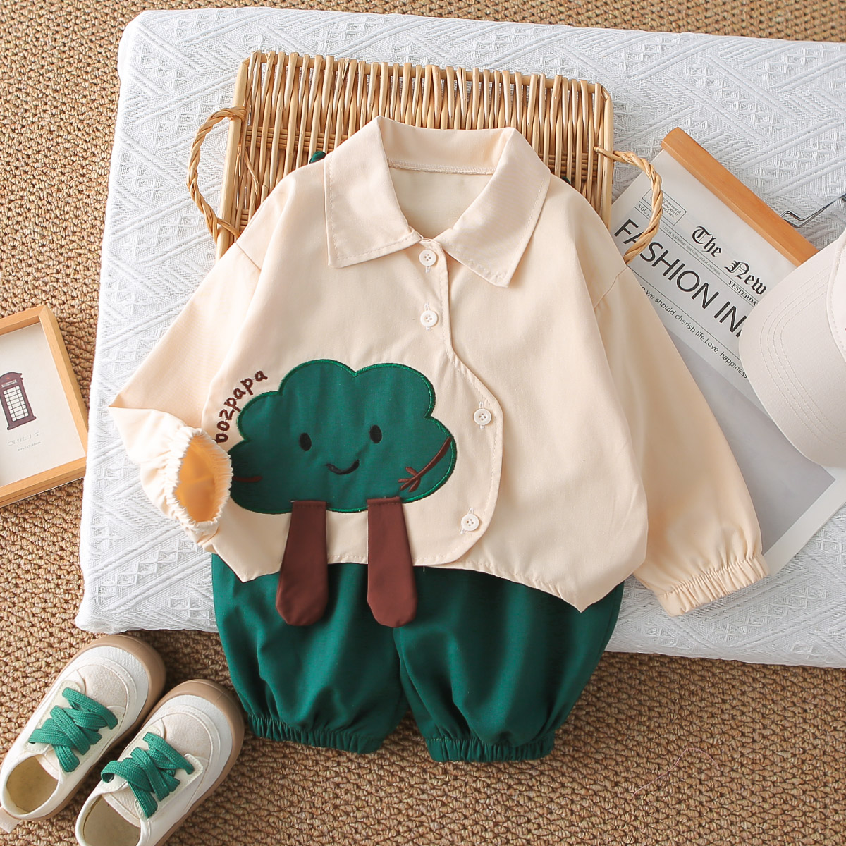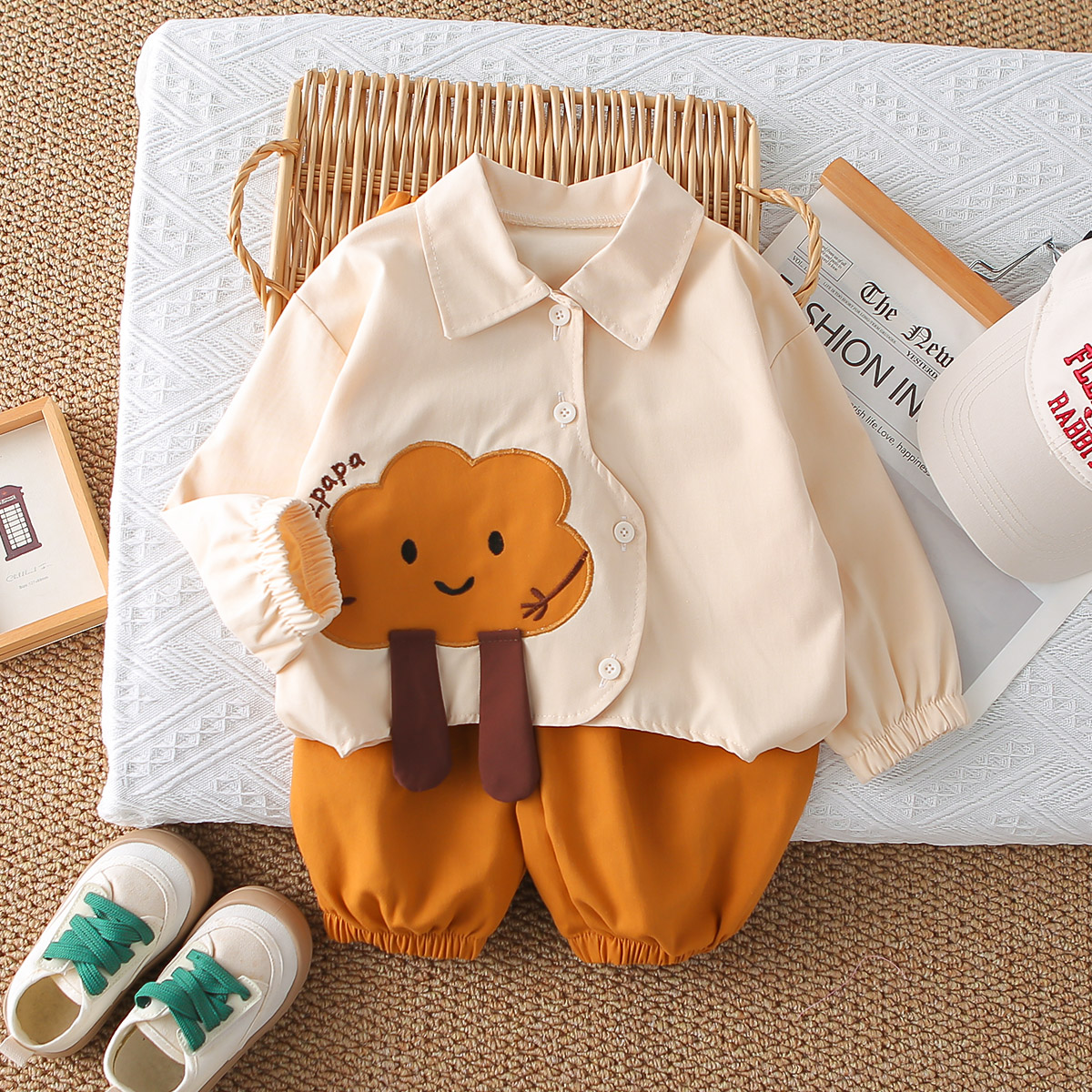 男童套装长袖衬衫两件套小儿童薄款洋气衣服2025新款帅气宝宝春秋