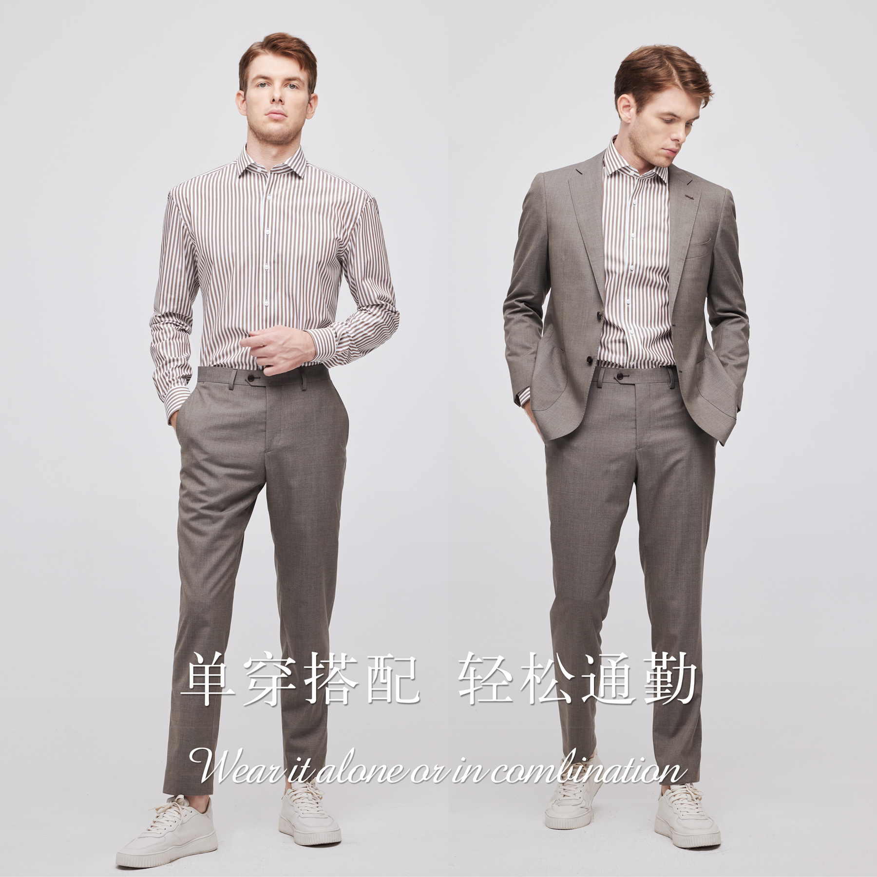 男女装中性条纹衬衫外搭棉氨混纺微弹抗皱商务休闲衬衣时尚温莎领