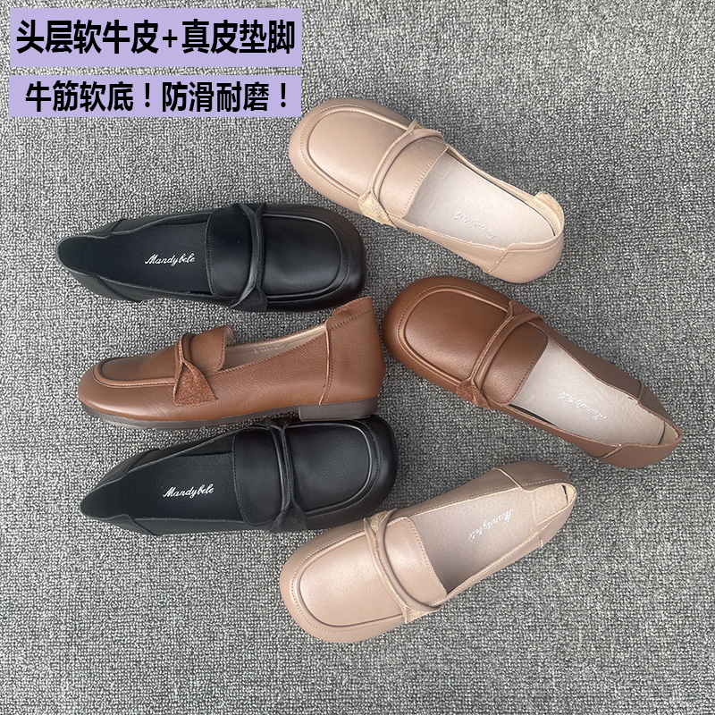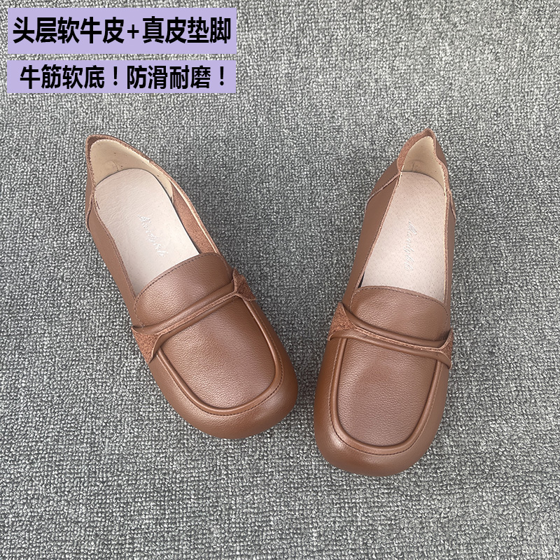 真皮女鞋平底妈妈鞋软底软面单鞋