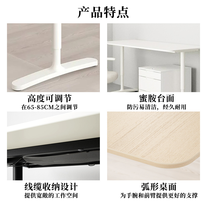 贝肯特白色桌子可升降调节书桌电竞桌圆角办公桌国内正品代购现货