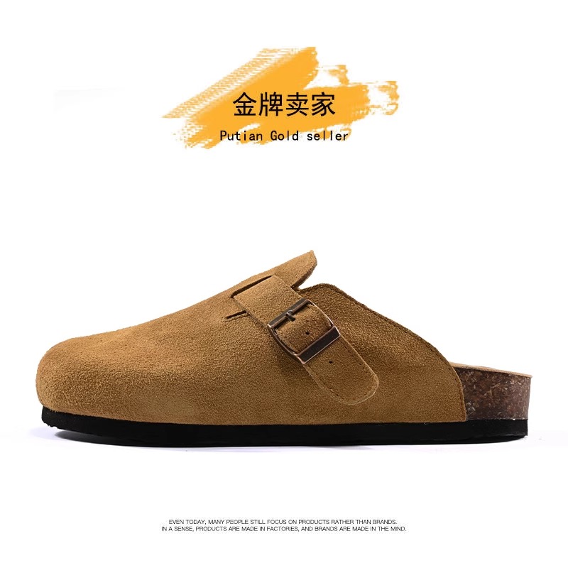 勃肯鞋男外穿包头拖鞋真皮软木一脚蹬厚底半拖复古懒人博肯鞋女款