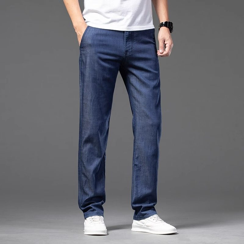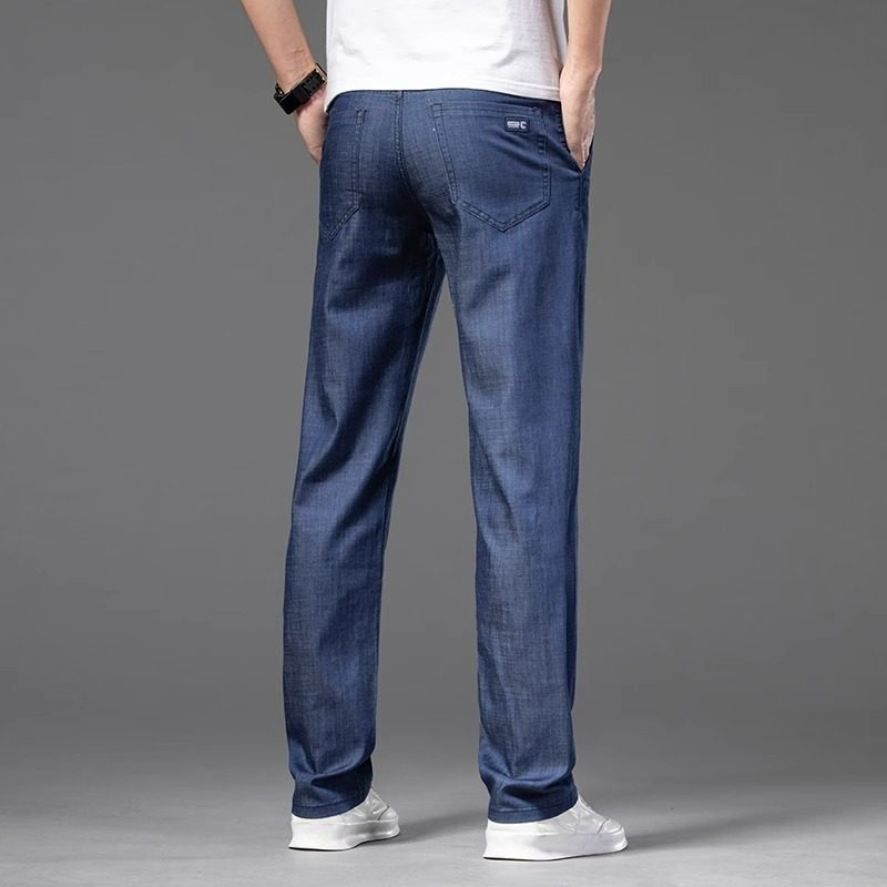 男士冰丝牛仔裤直筒宽松夏季薄款男裤子中年休闲天丝超薄高端长裤