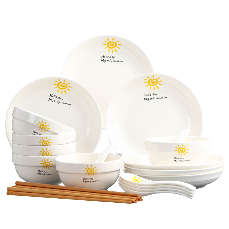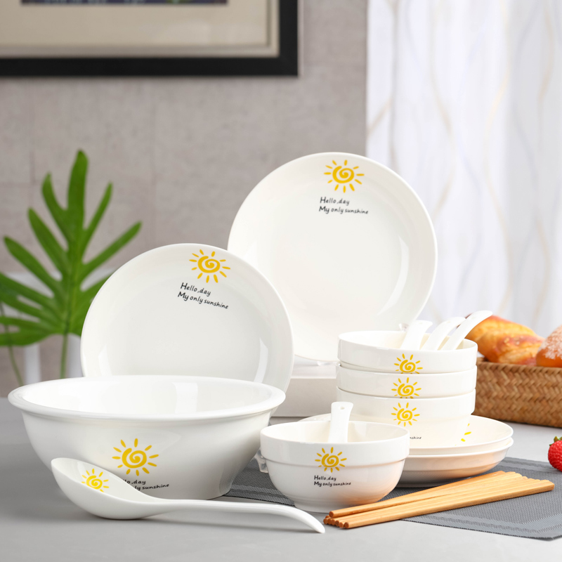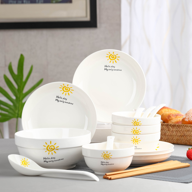 卡通碗碟套装中式创意可爱陶瓷盘子碗组合餐具4人家用碗盘