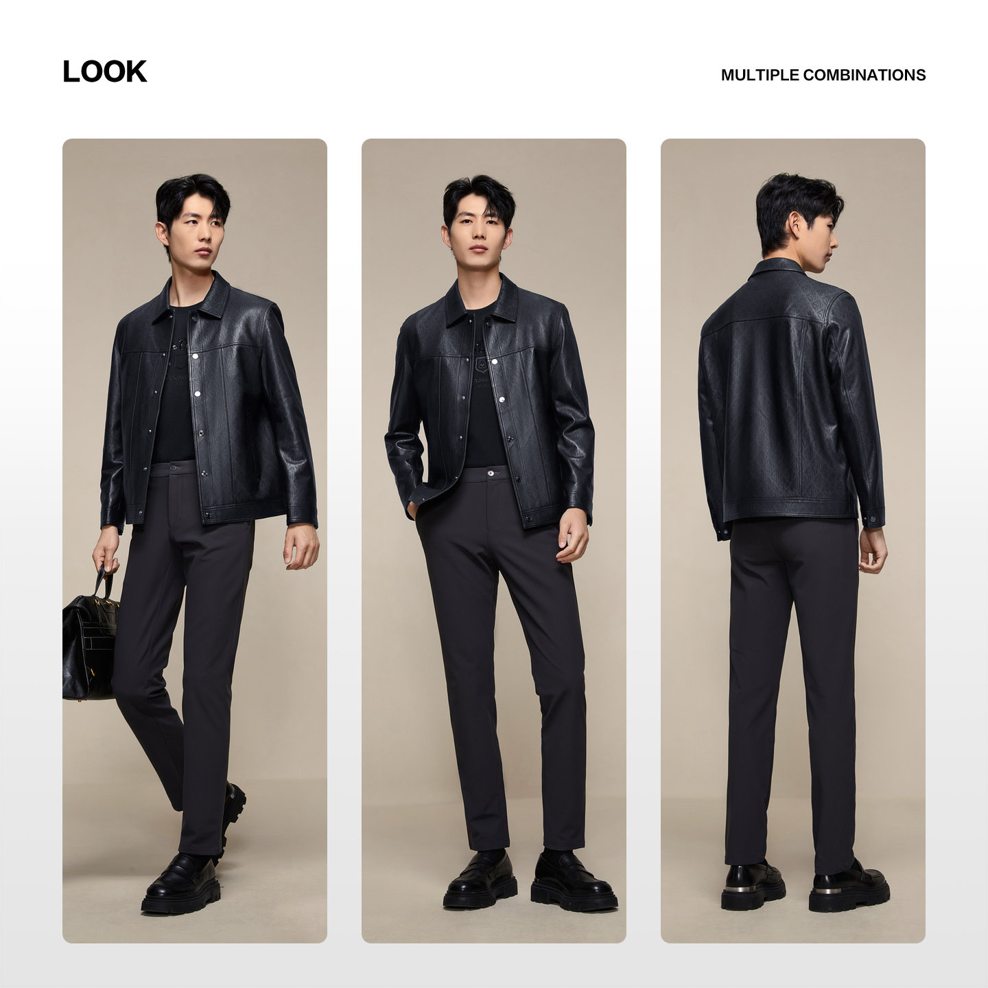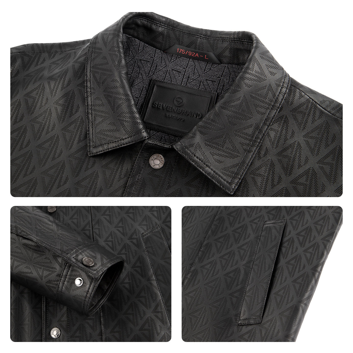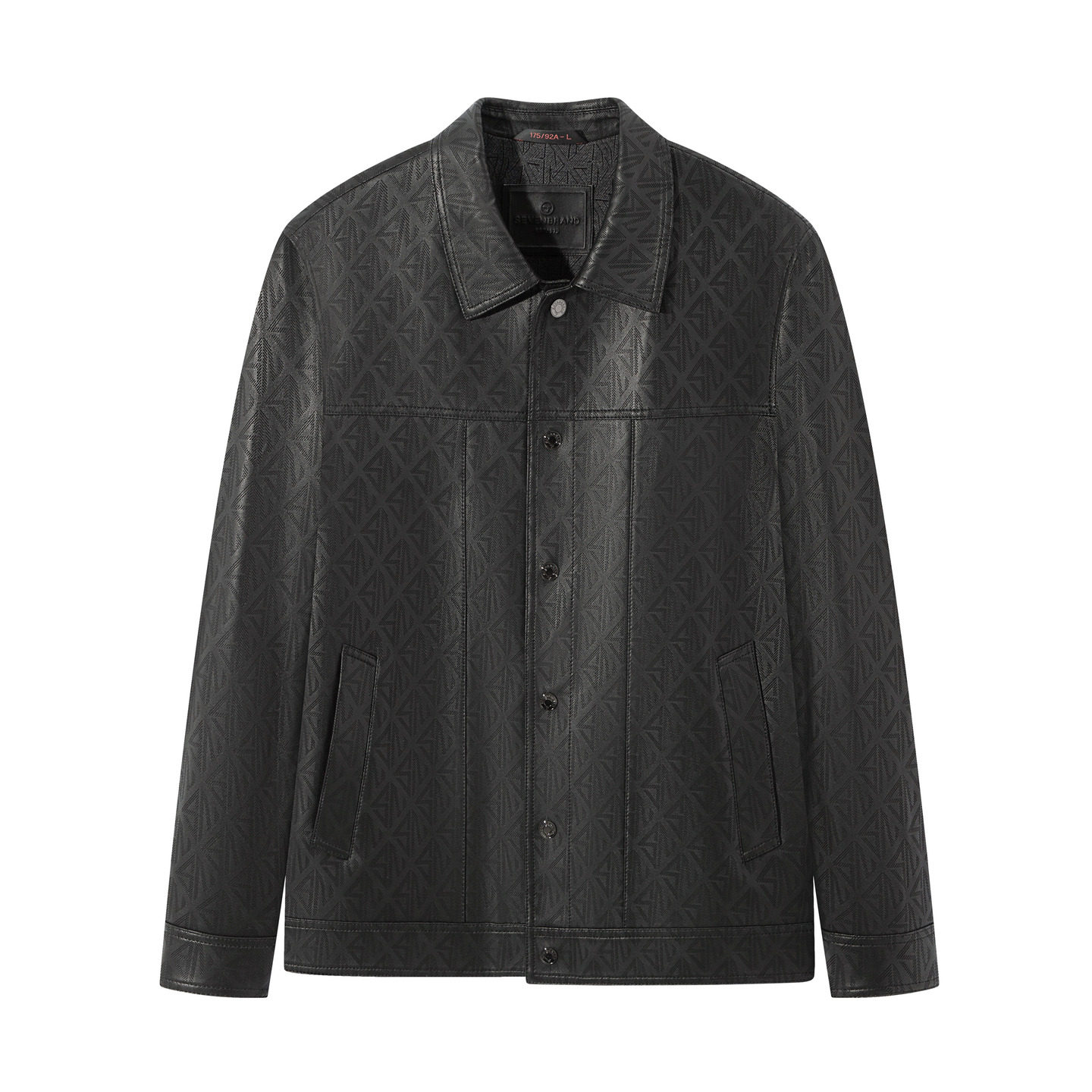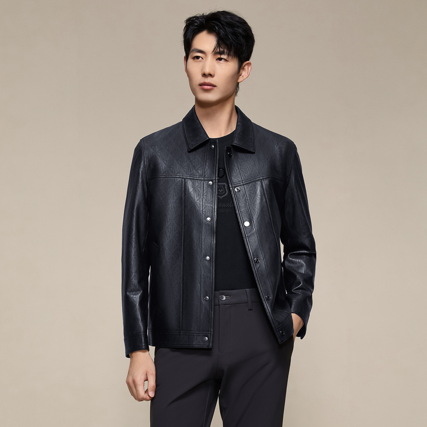 【绵羊皮/满身雕花】柒牌真皮皮衣翻领休闲商务外套秋冬新款男装