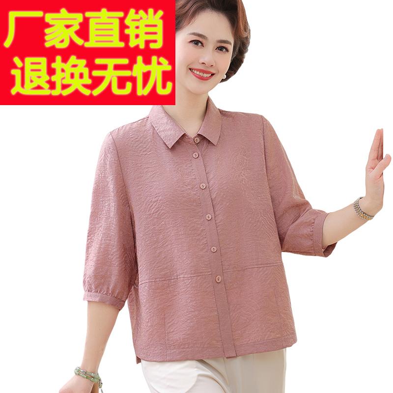 2025新品母亲节中老年妈妈休闲衬衫中年高贵女装七分袖衬衣两件套