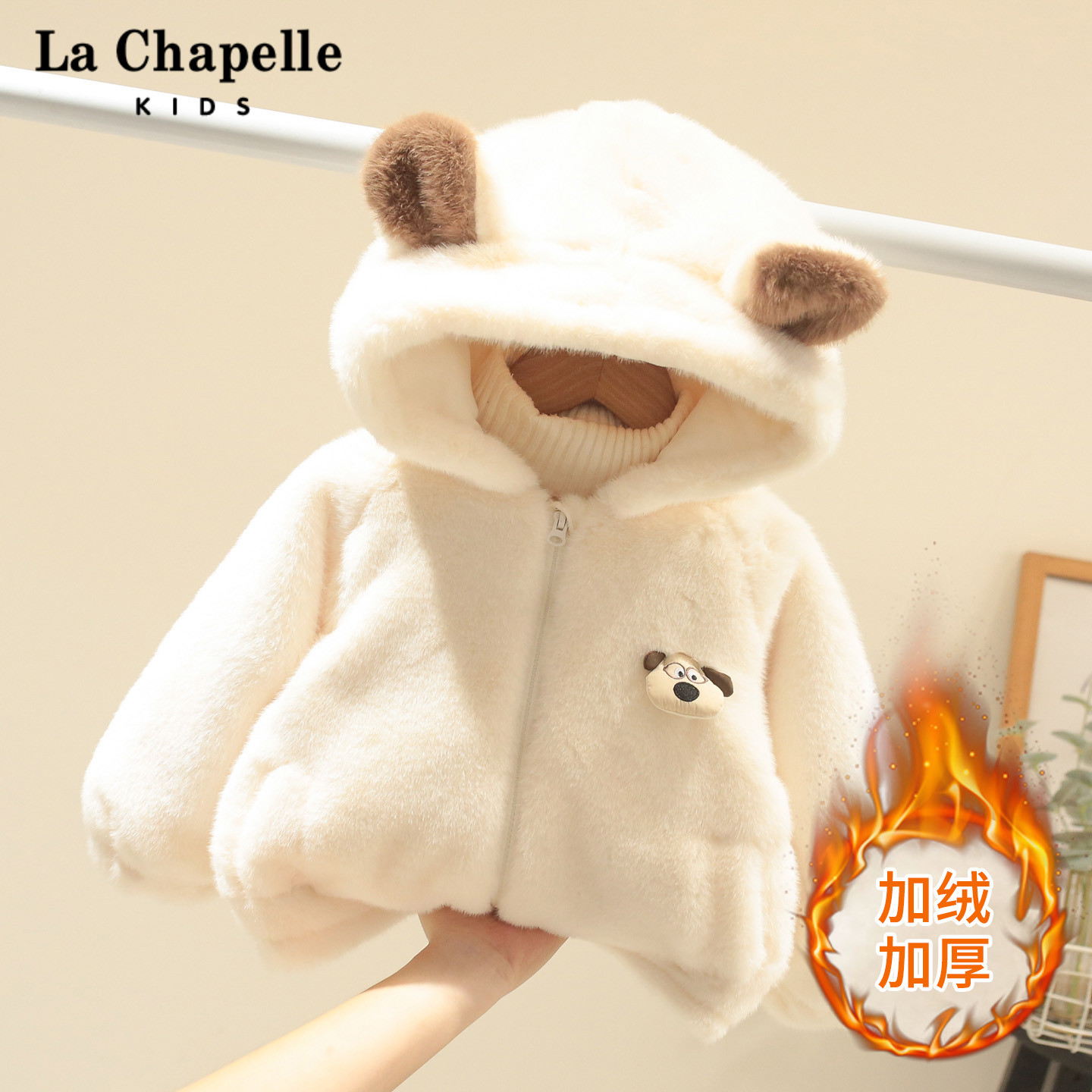 拉夏贝尔童装男童毛毛衣外套秋冬装儿童加绒加厚棉服宝宝洋气上衣