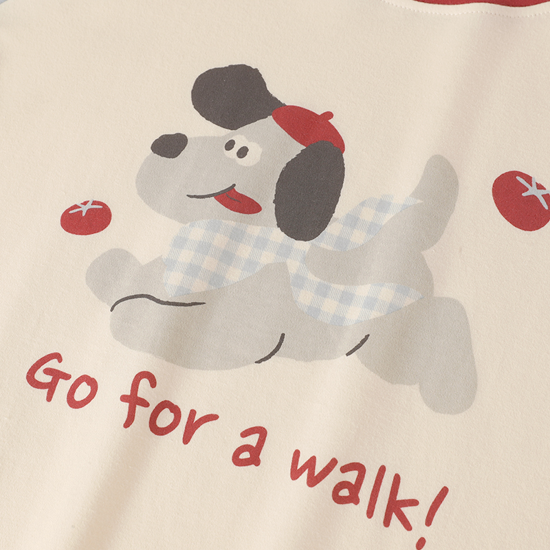 『吃番茄の狗』时尚卡通格纹情侣睡衣女春秋男长袖带胸垫家居服套