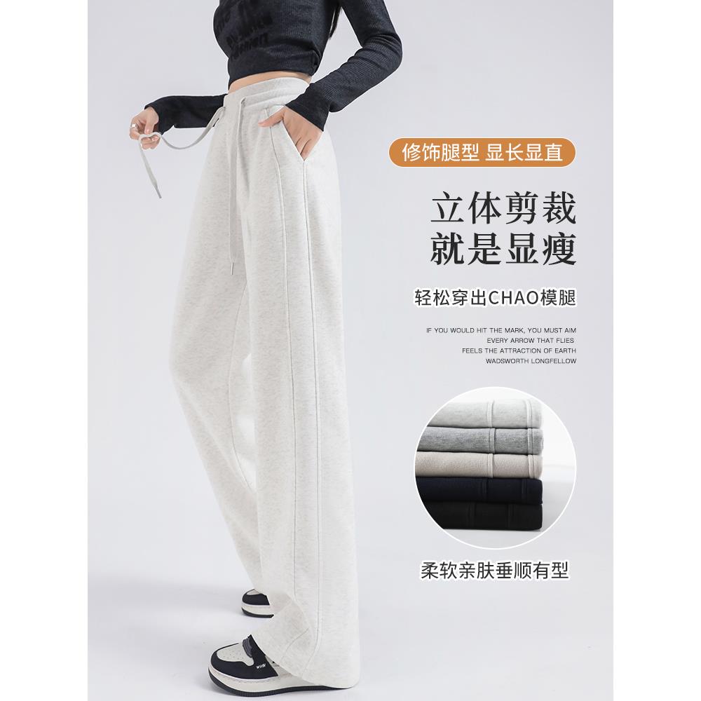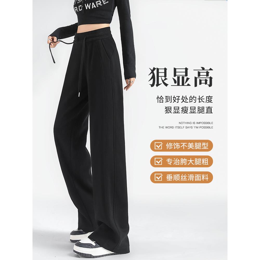 藏青色运动阔腿裤女2025新款高腰垂感春秋大码直筒卫裤显瘦香蕉裤