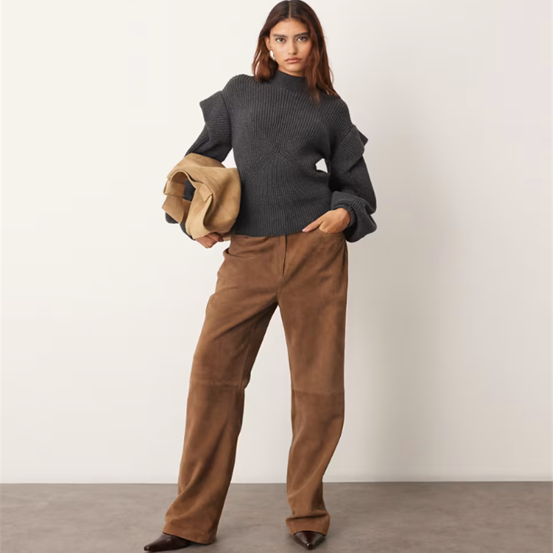 外贸原单英国as秋冬慵懒风高领套头毛衣女宽松立体装饰针织衫灰色