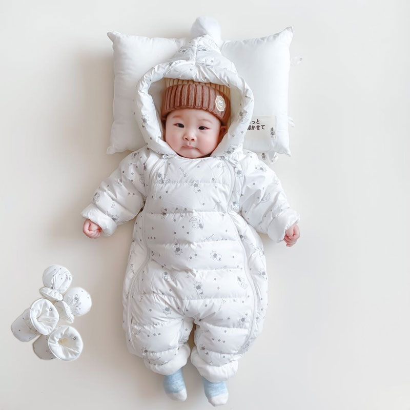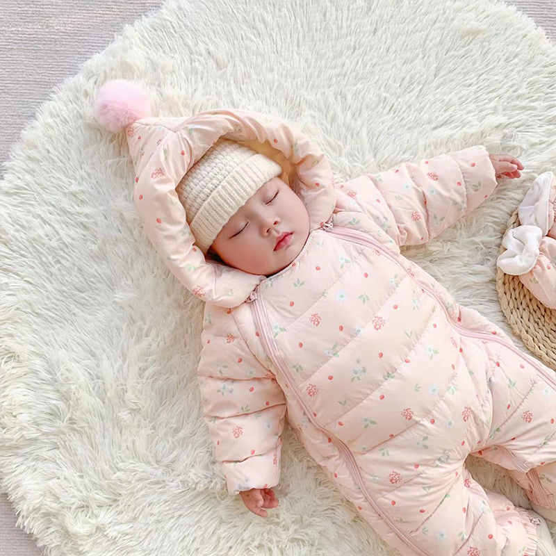 新生婴幼儿羽绒服连体衣秋冬季外出0-1岁小月龄女宝宝冬天装外套