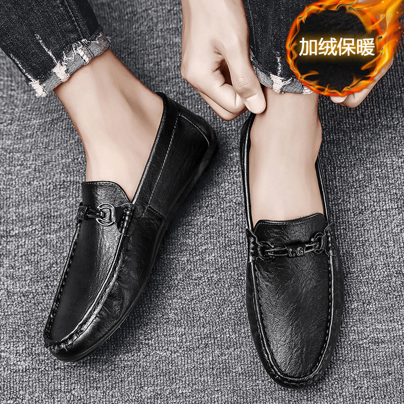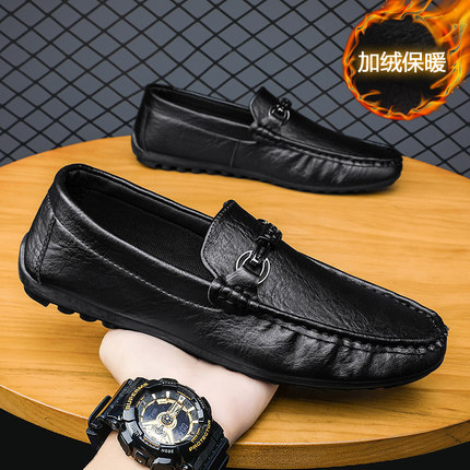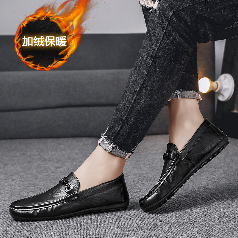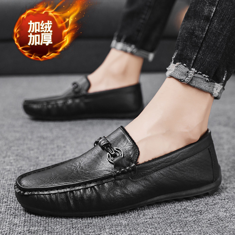 冬季男鞋商务正装英伦休闲百搭黑色皮鞋运动一脚蹬开车豆豆鞋潮鞋