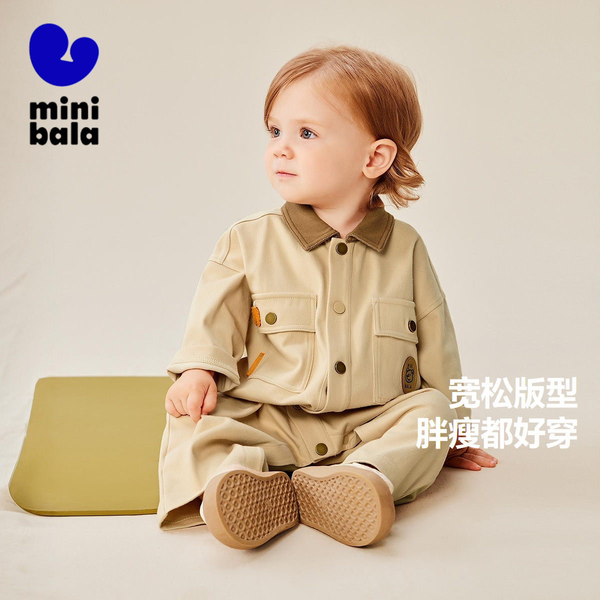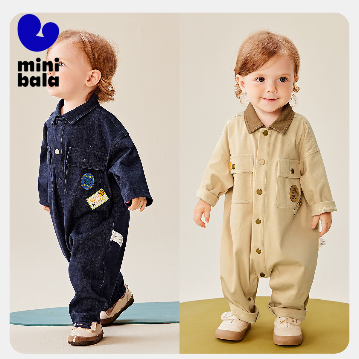 迷你巴拉巴拉宝宝仿牛仔连体衣男女宝复古工装风衣服2025秋季新款