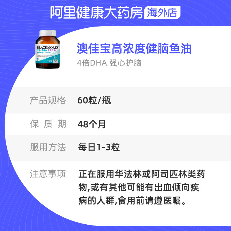 BLACKMORES澳佳宝深海脑铂金DHA鱼油omega3软胶囊保健品4倍高浓度