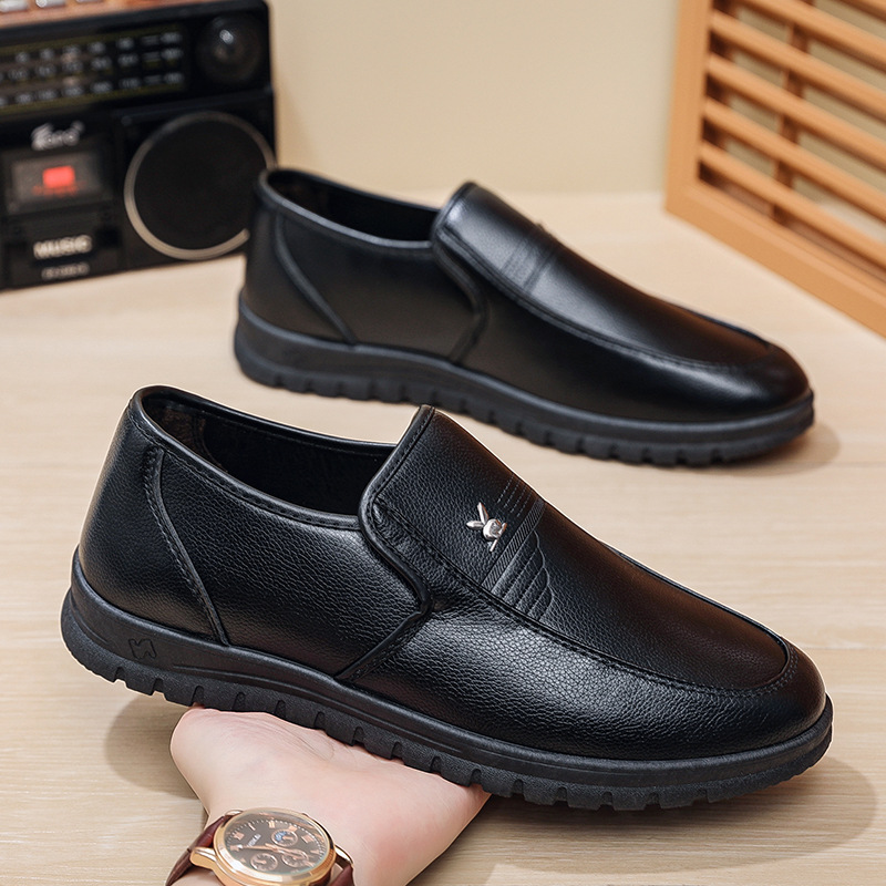 【真软皮】男鞋秋冬皮鞋时尚百搭商务休闲鞋男士软底中老年爸爸鞋