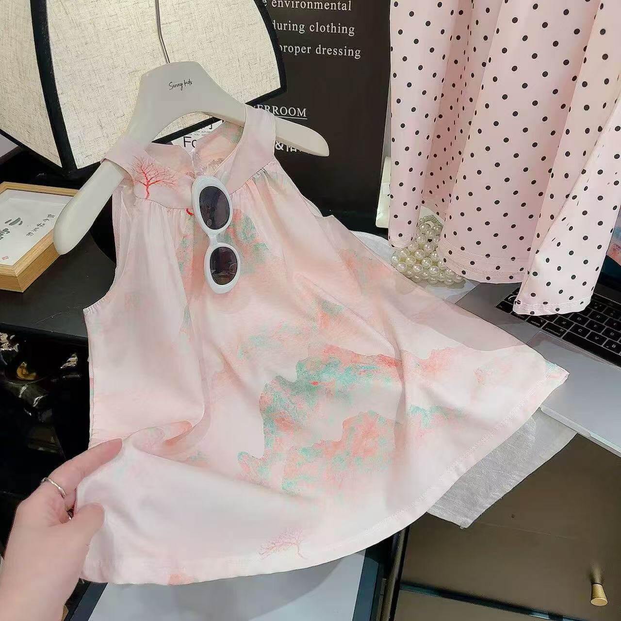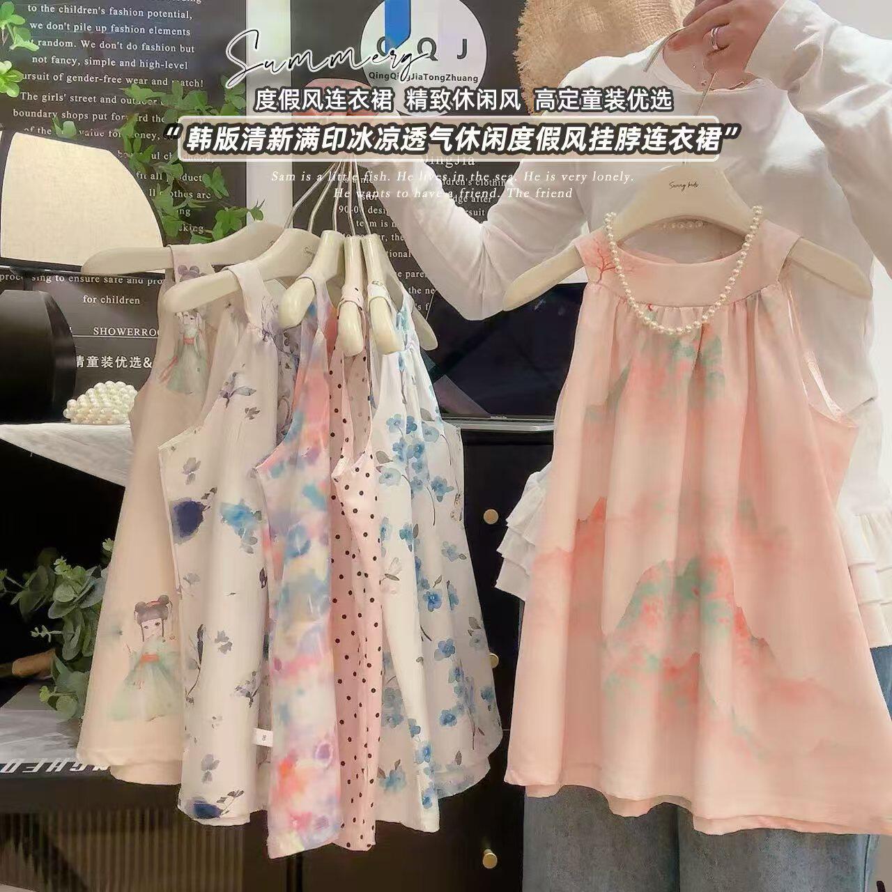 品牌清仓夏季女童洋气连衣裙女宝碎花背心裙子小女孩气质公主裙中