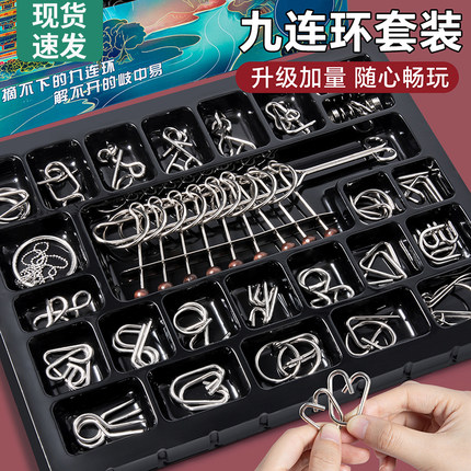 九连环智力解扣24件套儿童鲁班锁孔明锁全套小学生益智玩具解环扣