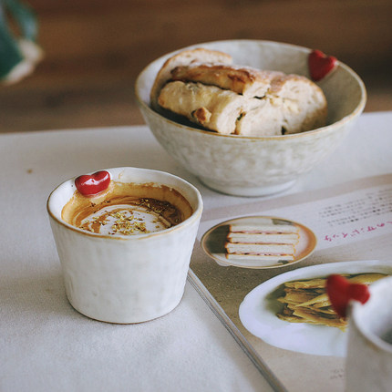 泽滕家马克杯浮雕可爱日式粗陶简约咖啡拿铁拉花牛奶果汁下午茶杯