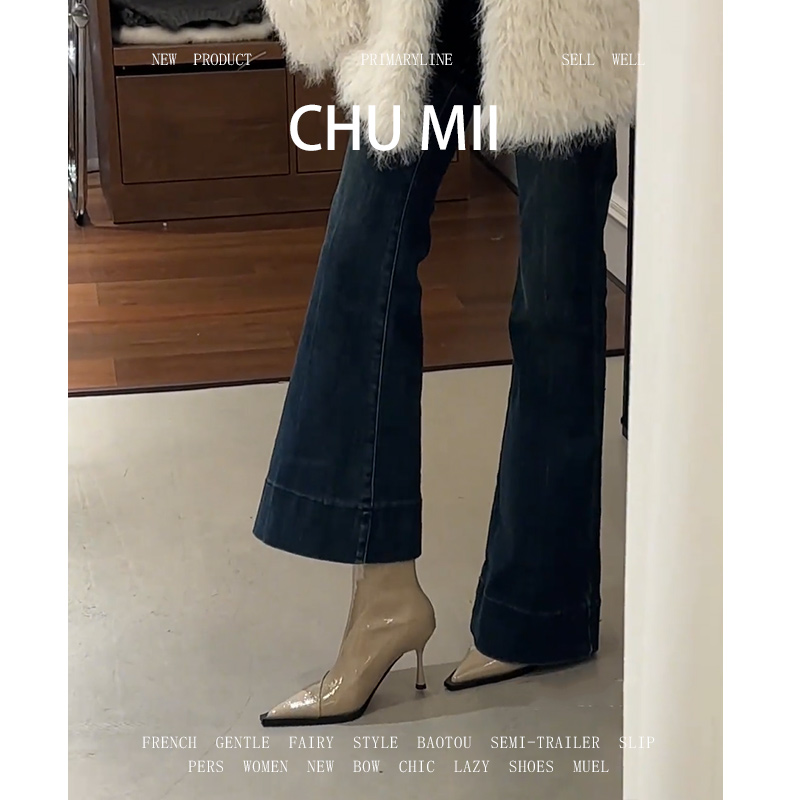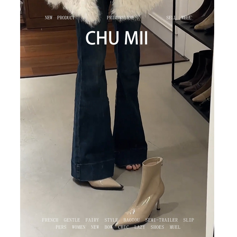 羊皮版~尖头短靴女复古漆皮高跟弹力瘦瘦靴尖头细跟气质马丁靴