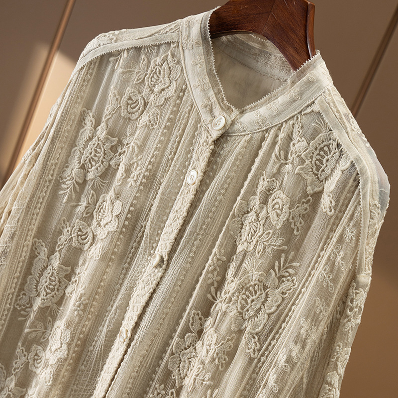 微米级手感!新中式万针刺绣真丝长裙子高端宽松100%桑蚕丝连衣裙