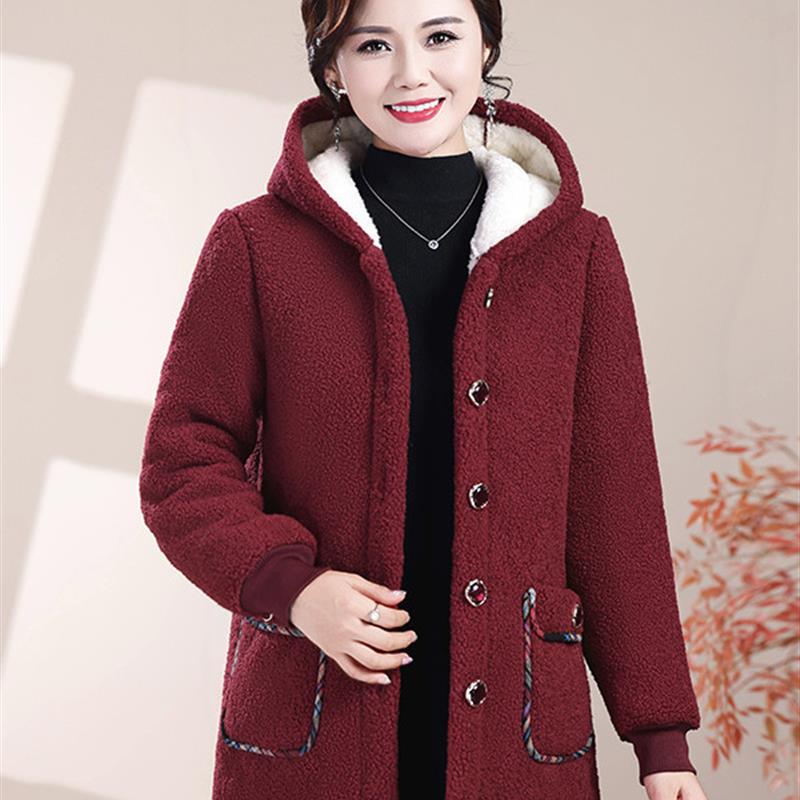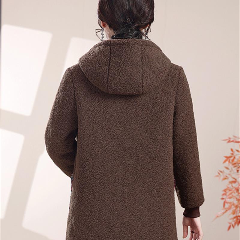外套连帽棉服妈妈装秋冬季新款中老年女装加绒加厚保暖颗粒绒棉衣