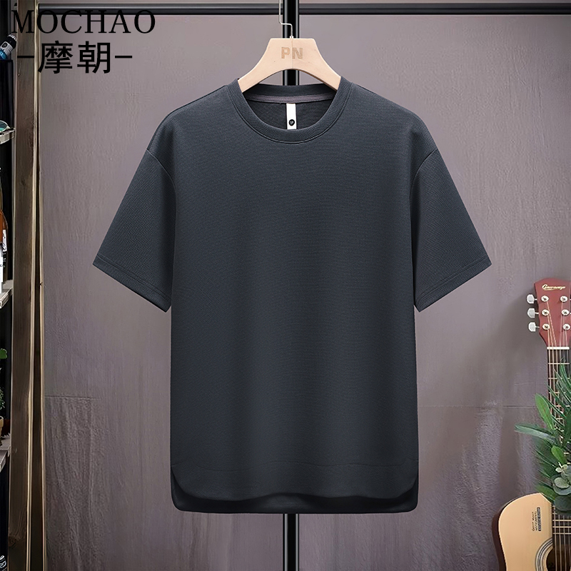 摩朝大码纯色短袖男士夏季百搭圆领半袖微胖穿搭简约时尚休闲t恤