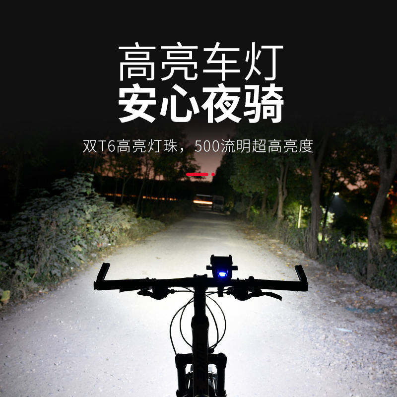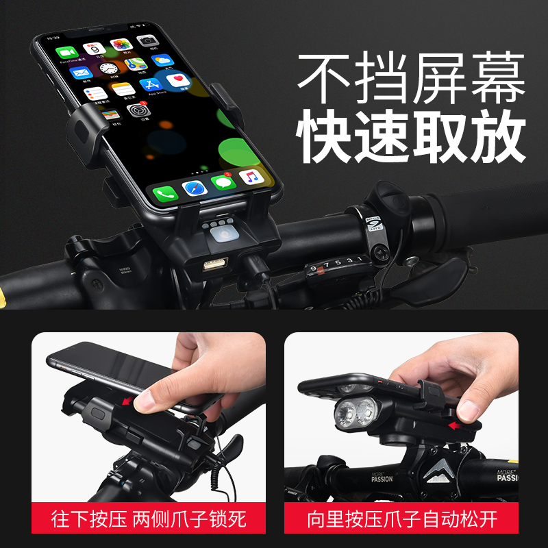 自行车灯山地车夜骑前灯单车充电强光手电筒骑行装备配件手机支架