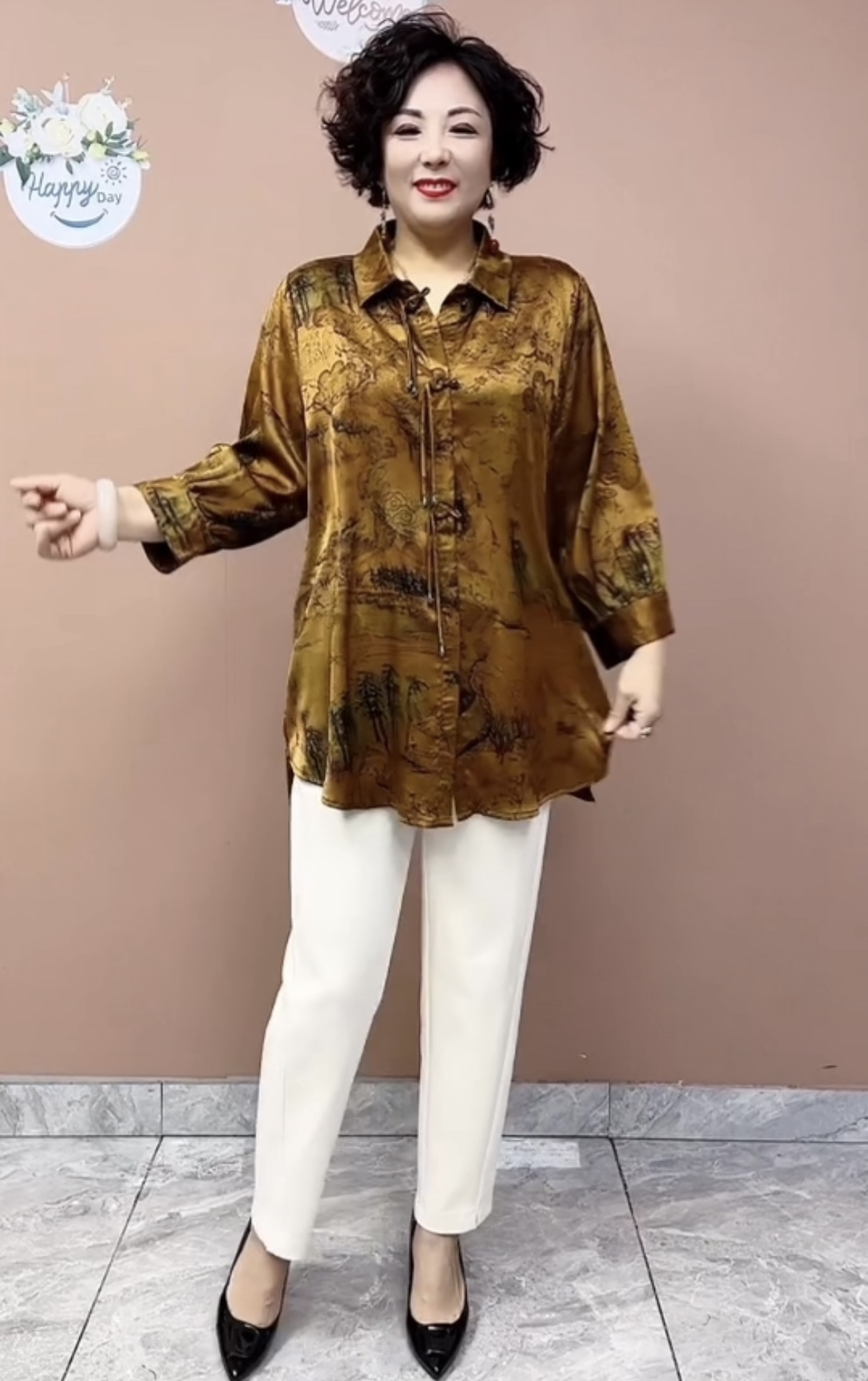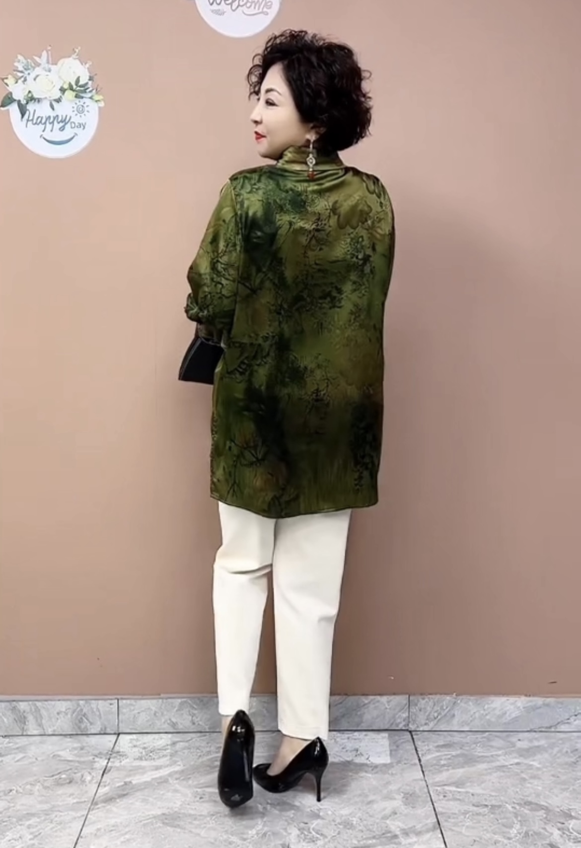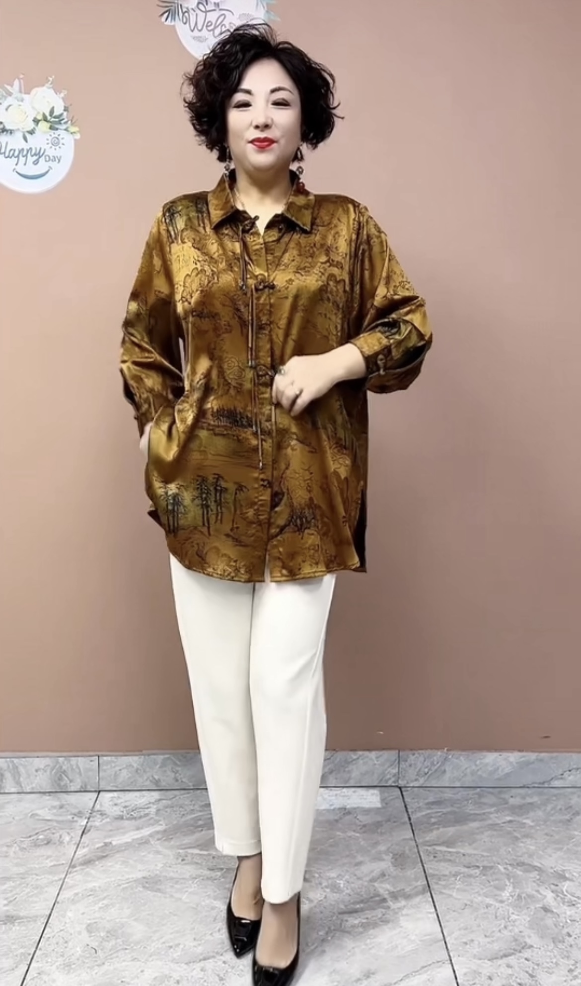 春夏中老年妈妈装真丝大码衬衫宽松遮肉香云纱九分袖桑蚕丝上衣女