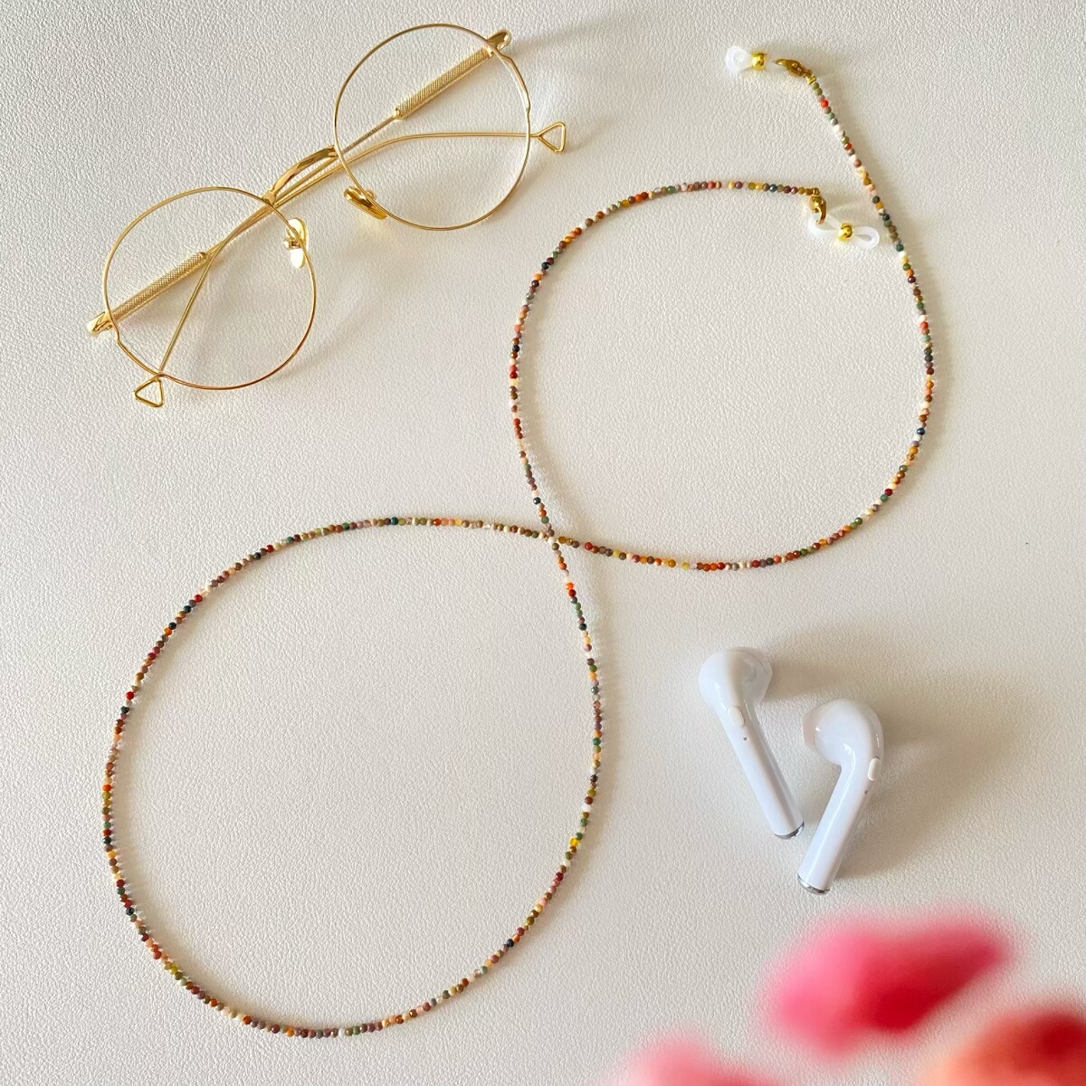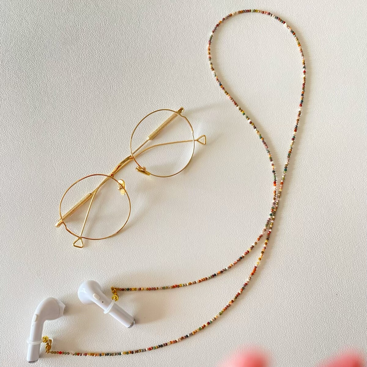 天然石阿拉善眼镜链女复古精致2mm锁骨耳机链港风时尚墨镜防丢链