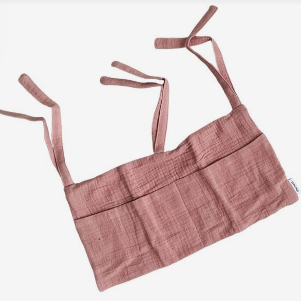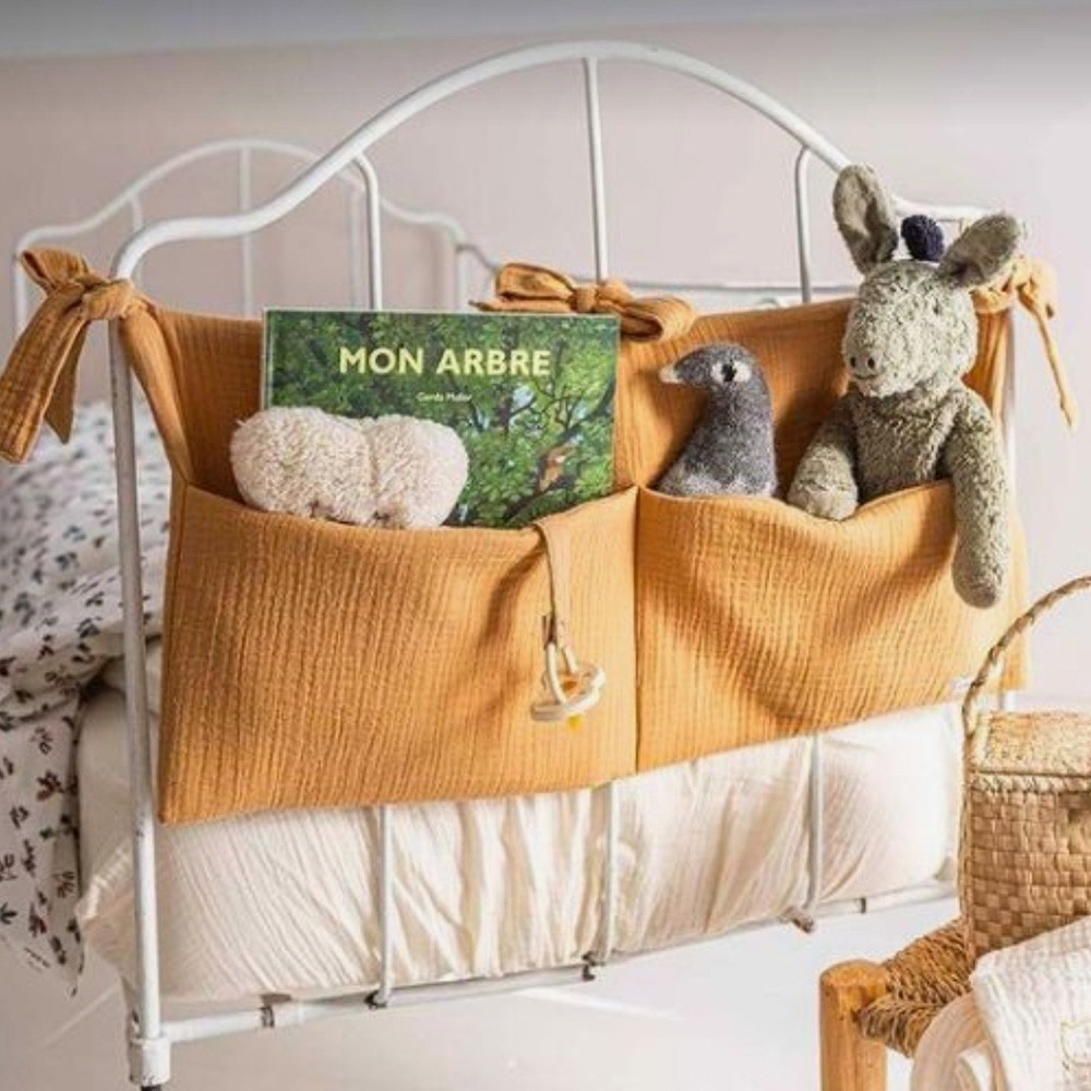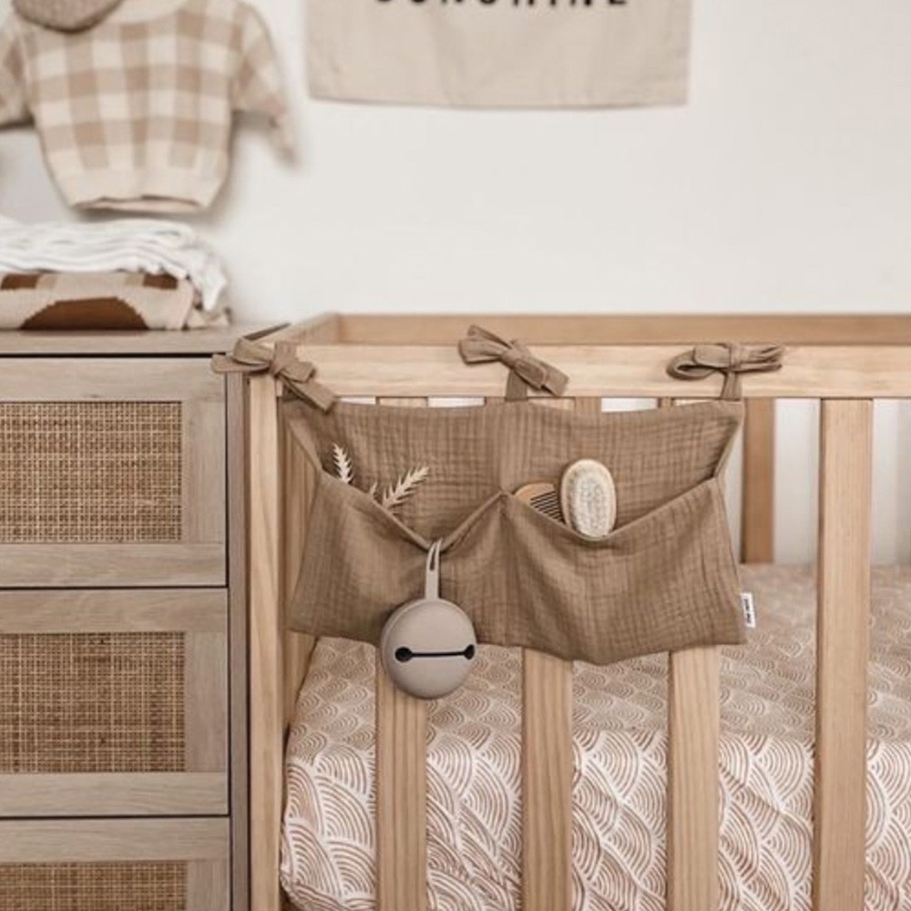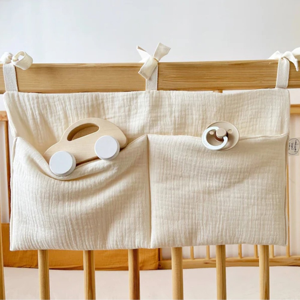 纯棉布艺宝宝用品床边收纳袋宽边系带款婴儿车床收纳挂袋