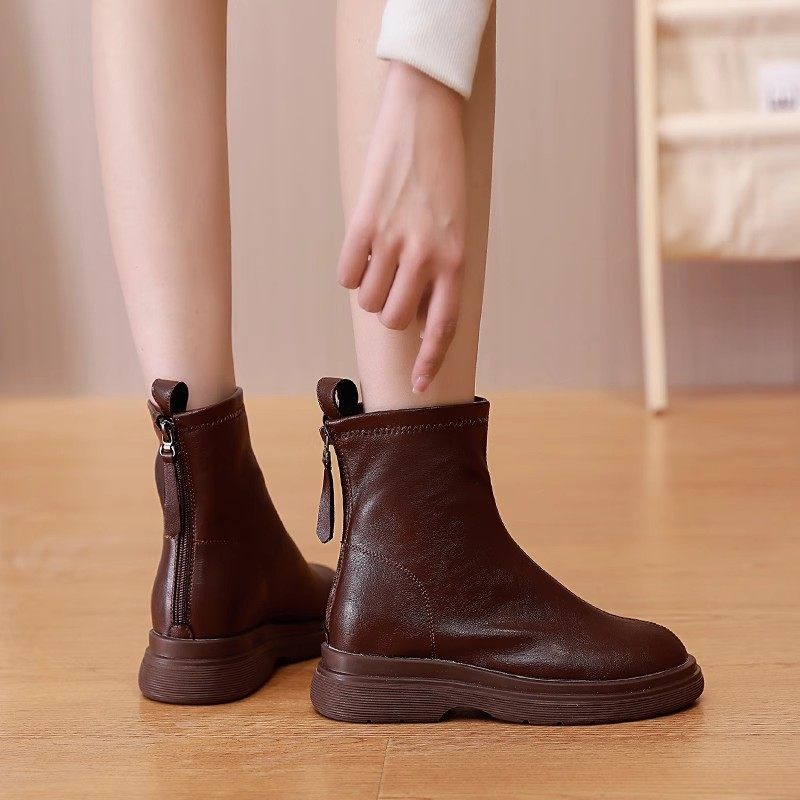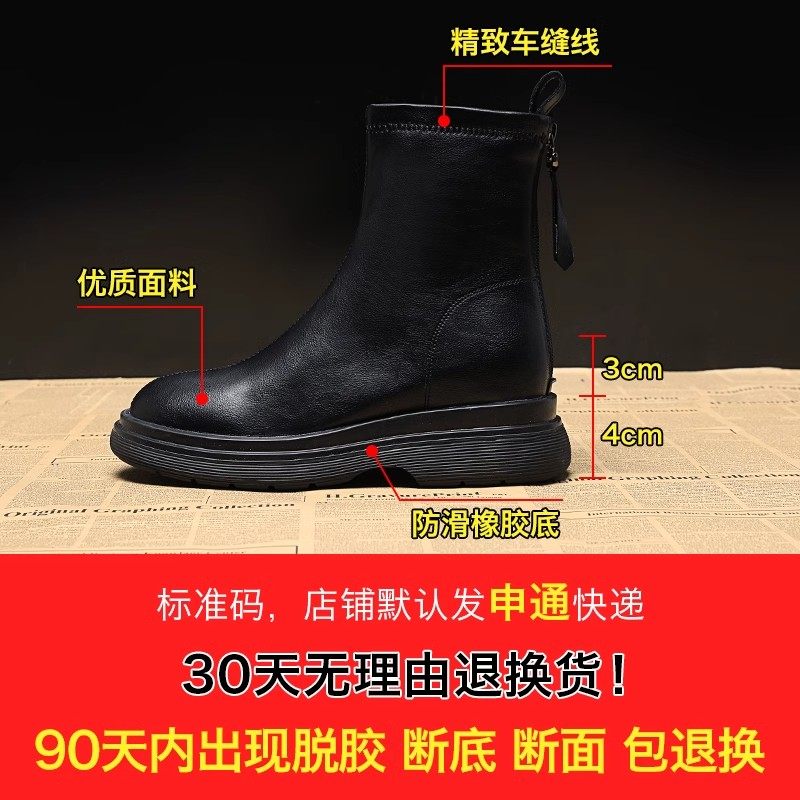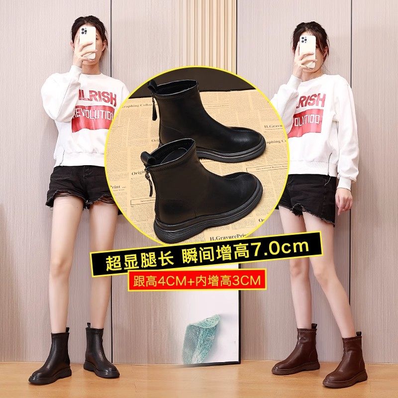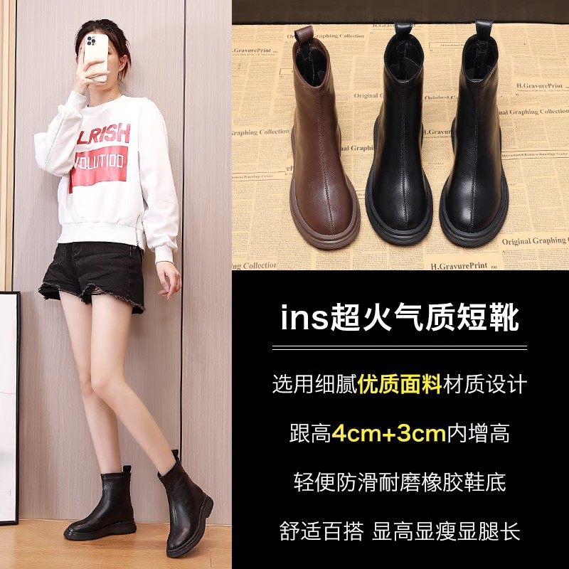 真皮厚底马丁靴女款2025新款冬季加绒爆款内增高短靴小个子瘦瘦靴