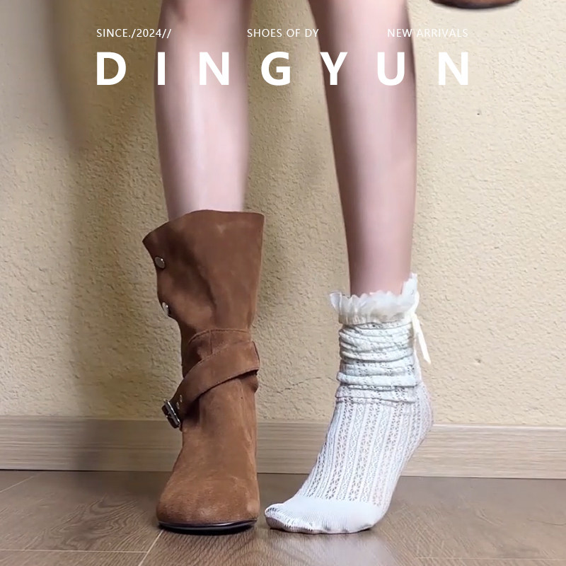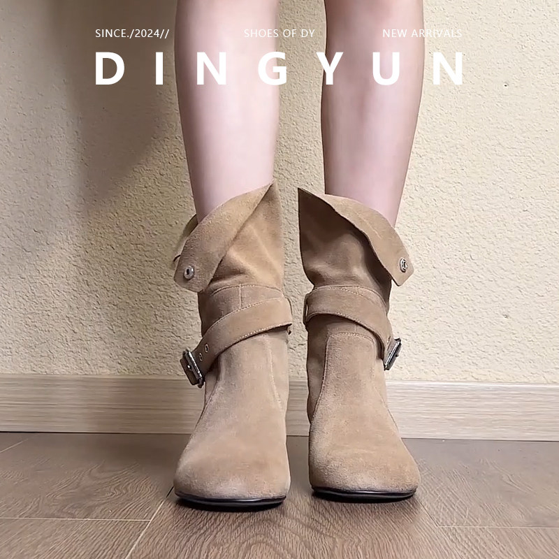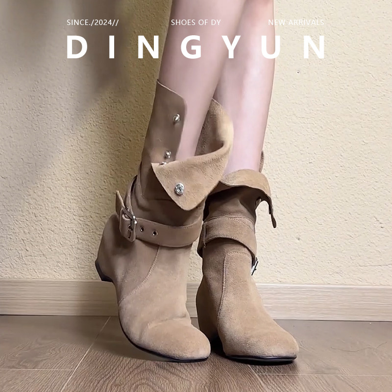 羊皮版dingyun丁允内增高短靴子中筒靴女冬加绒马丁靴美拉德单靴