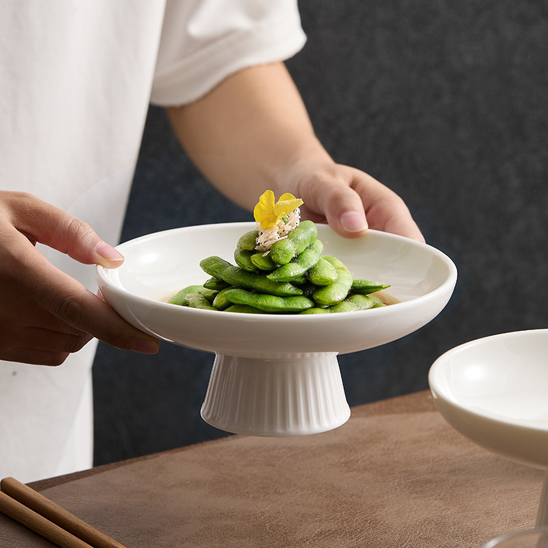 高脚盘子陶瓷日式精致小果盘零食盘酒店餐具中式禅意茶点碟点心盘