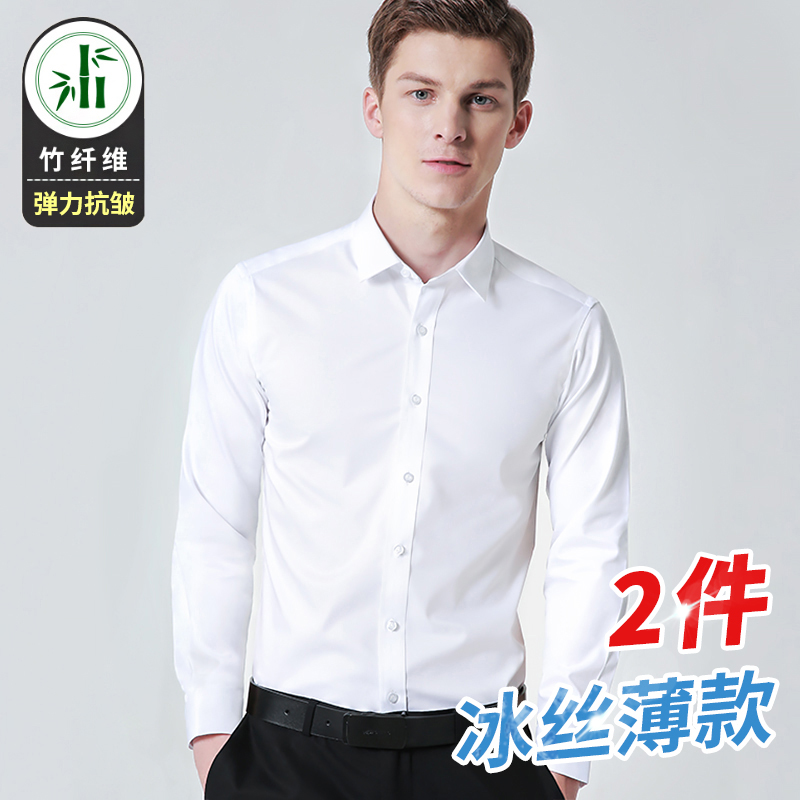 春秋白衬衫男长袖商务正装修身黑色职业大码工装上班白色西装衬衣