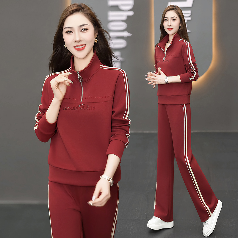 休闲运动套装女春秋两件套2025新款立领半拉链大码宽松卫衣跑步服