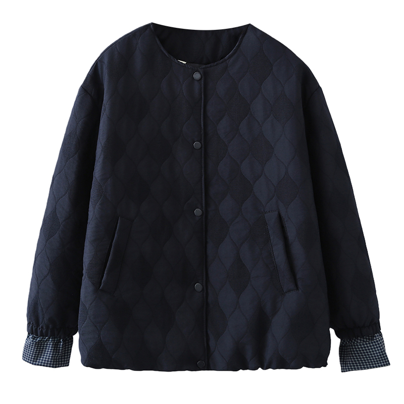 大码女装棉服撞色格子拼接轻薄款棉衣胖mm200斤秋冬季夹棉外套女