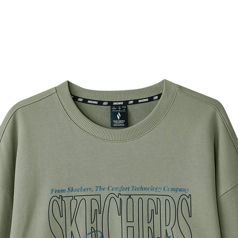 斯凯奇男女同款针织套头卫衣宽松舒适长袖打底衫 L324U059/04AU