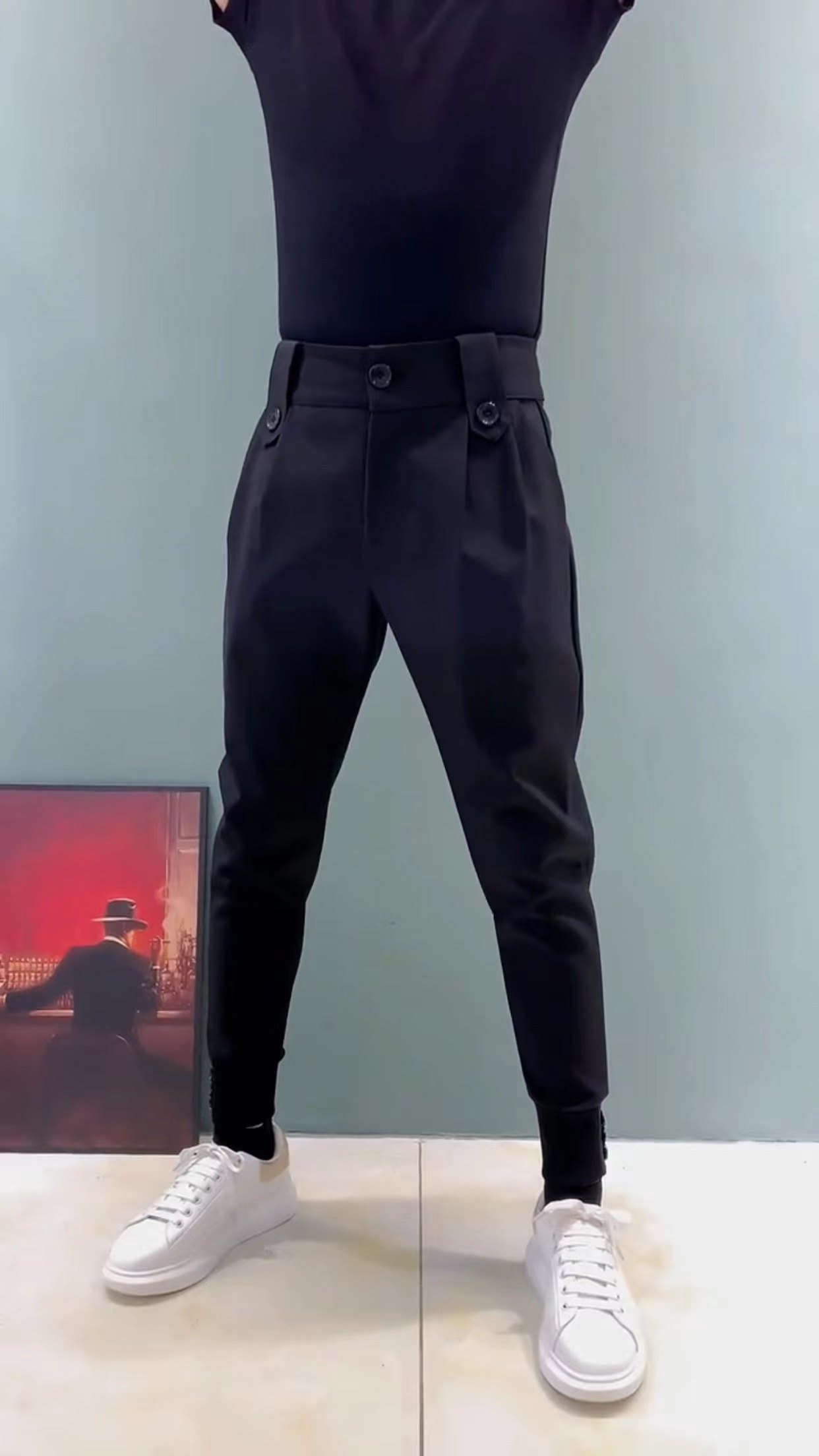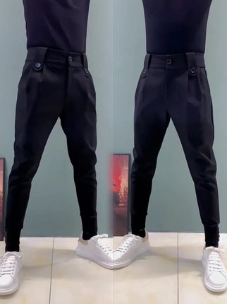 秋冬潮牌西裤男士修身黑色休闲男裤百搭韩版小脚裤潮流痞帅束脚裤