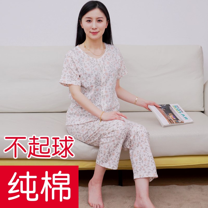 中老年睡衣女士纯棉短袖开衫薄款家居服空调裤大码全棉老年人长裤