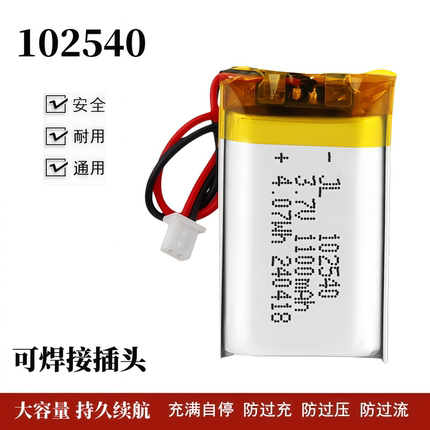 3.7V锂电池102540通用智能发光门锁美容仪VR眼镜点菜机消毒灯5V