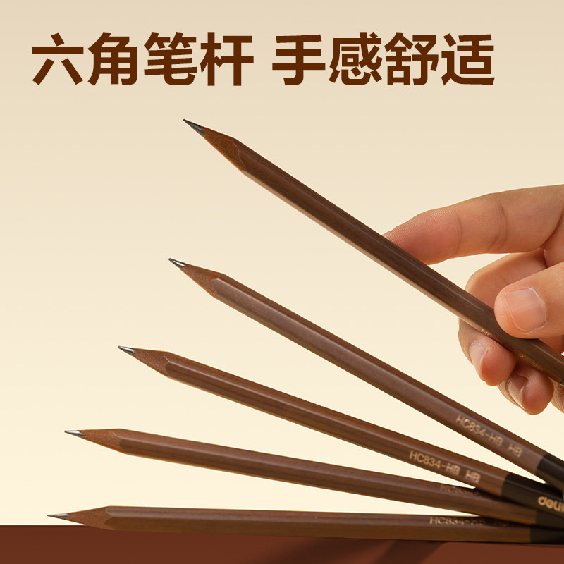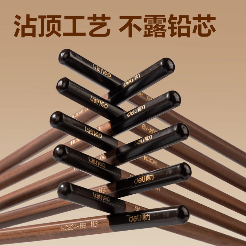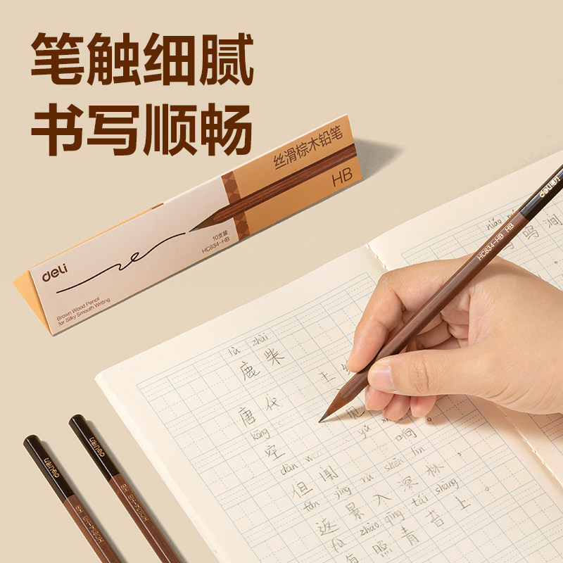 得力棕木铅笔巧克力色hb小学生专用一二年级学生铅笔2b儿童幼儿园彩杆学习文具用品套装考试笔
