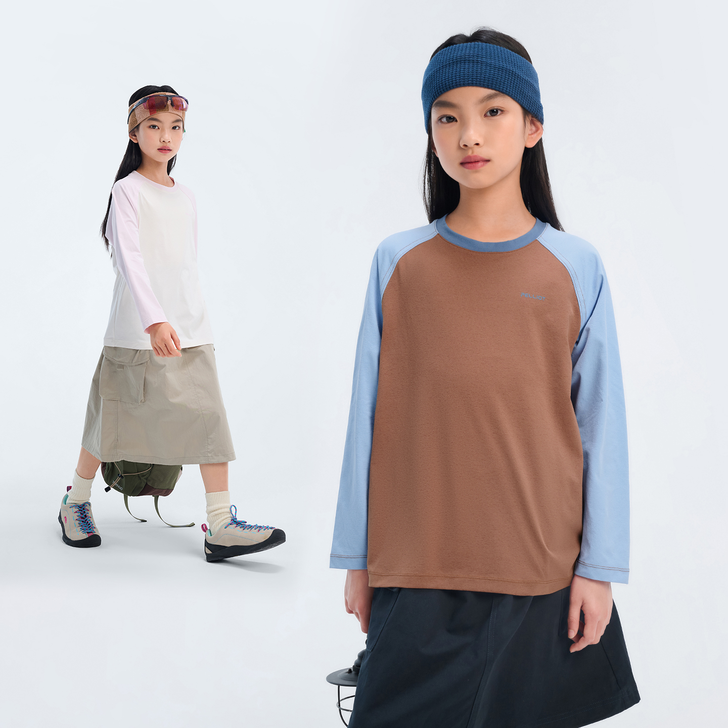 伯希和户外长袖T恤男童女童速干抑菌拼接打底衫防晒透气运动上衣
