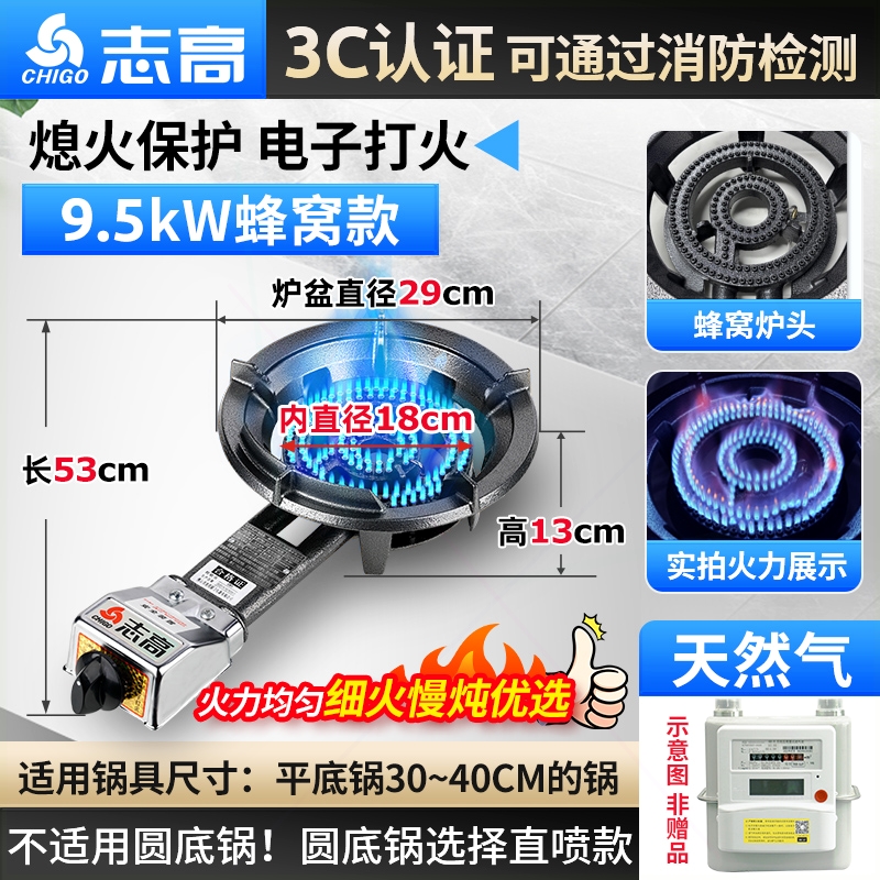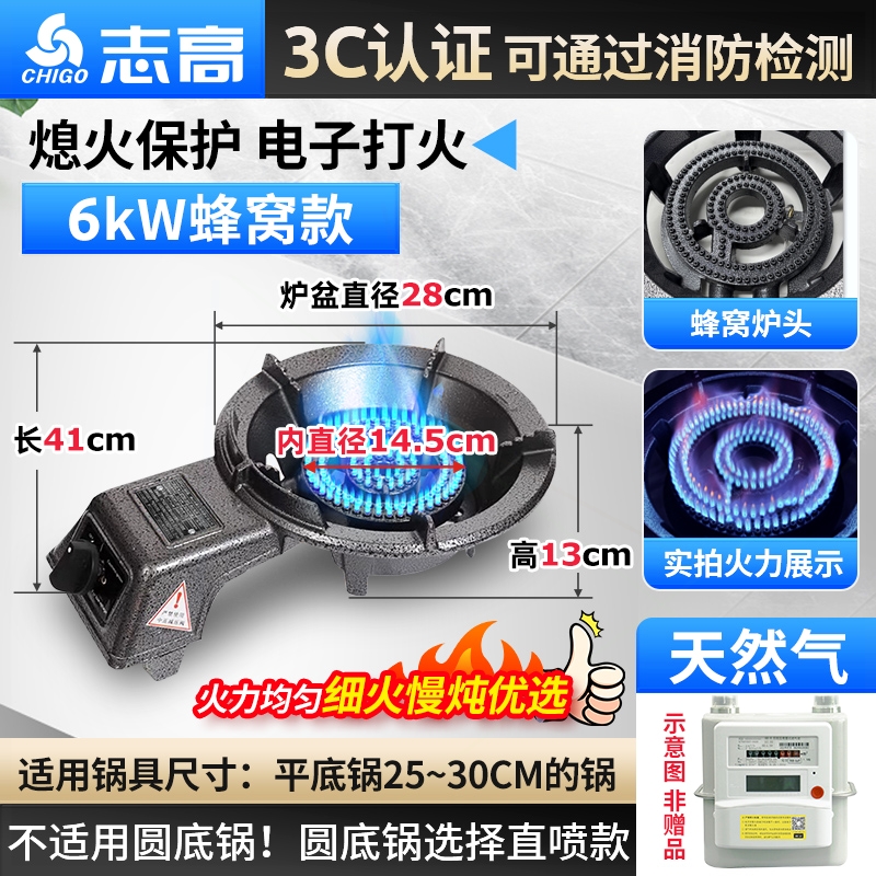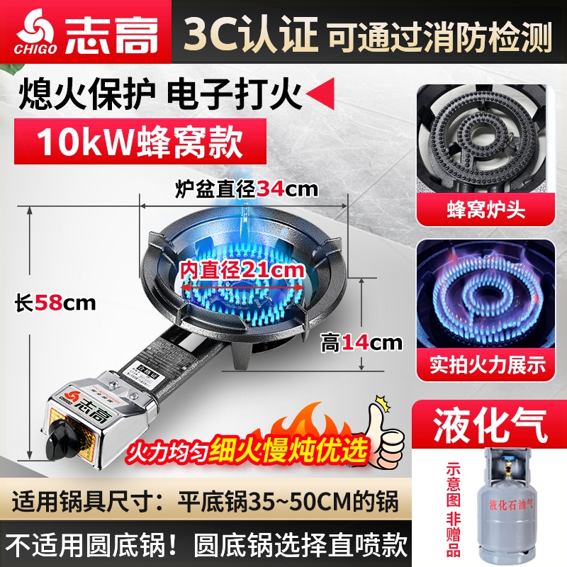志高商用燃气灶猛火灶爆炒单灶低带熄火保护压液化气天然气煤气灶